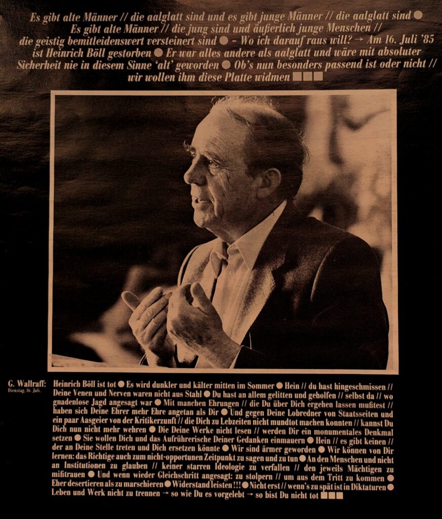 In unserem Kulturstadel spielten unsere Freunde Werni und Bebsi BAP damals endlos auf und ab. Allerdings hatten wir keine Optik dazu, wussten also nichts vom Aussehen der Bandmitglieder, auch nicht vom Frontman, unserer neuen Reisebekanntschaft Wolfgang Niedecken. Zurück fuhren wir über Samos, wo wir kaum süßen Weißwein tranken, dafür aber mehrere in engen Kurven verunfallte Vespa-Piloten ins Krankenhaus lieferten und einer schier endlos stürmischen Fährentortur weiter nach Athen und über Mazedonien bis ins Ulcinj-FKK-Camp in Montenegro. Tage später, wir hatten gerade Mostar mit seiner damals noch originalen und unzerbombten Brücke über die Neretva als letzte Station auserkoren, las ich in einer deutschsprachigen Zeitung vom Tod Heinrich Bölls. Ein paar Monate später holte ich mir die neueste BAP-LP „Ahlmänner, Aalglatt“ und las am Cover von der Widmung an Heinrich Böll!
