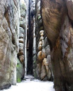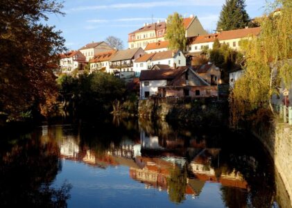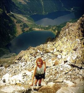 Gerade von M-stetten aus sind es höchstens mal 20 km zur tschechischen Grenze und bis in diese Zeit hatte ich von der anderen Seite keine Vorstellung, außer von tristem „Ostblock- Grau in Grau“. Als ich dann nach Öffnung dieser Grenzen gleich mit meinen Leuten auf Erkundungstour fuhr, war ich Ortsbildfetischist einigermaßen überrascht. Das „Grau“ gabs sehr wohl, aber die vielen so sehr unverschandelten Schmuckstücke von Ortschaften der Tschechoslowakei und Polens hatten es uns angetan. Größtenteils aus Geldmangel hat man diese Perlen dort, wie Telc, Cesky Krumlov, Litomisl, Pilsen, Prag, Wroclaw (Breslau), Krakow, Cicmany, Vlkolinec und Banska Stiavnica von riesigen „Schiachbauten“ verschont. Fortan verbrachten wir viele Wochenenden dort, mit Rafting-Touren an der Moldau, Wanderungen in den Felsen-Labyrinthen des Riesengebirges, Motorrad-Expeditionen in die Fatra oder Berg- und Ski-Touren in der Tatra. Den höchsten Berg Polens „entweihte“ ich gemeinsam mit Waltraud dann in den späteren 90ern. Indem wir bis ca. 1.300 m hoch mit dem Fahrrad rauf konnten, sparten wir Zeit und schafften den Rest bis zum 2.500 m -Gipfel und retour in nur wenigen Stunden. Probleme bekamen wir nur in den Fingern, da die lange und steile Strecke bergab, mit beiden Händen ununterbrochen an den Bremsen des Radls, lästige Krämpfe verursachte. Und einige Male feierten wir in größerer Zahl auch Sylvester dort. Die tschechische Bierkultur, wo man im sogenannten „Hostinec“ extrem süffigen, g’schmackigen und billigen Hopfentrank bekam, hat es uns wahrlich angetan. Wenn nur mehr ein 3 cm „Hansl“ im Glasl war, wurde selbstredend und mit cremigem Schaum ein neues volles gereicht! Wenn auch die politische Entwicklung in diesen Ländern sich jetzt immer besorgniserregender darstellt, wird’s Zeit, dort wieder mal nach dem „Linken“ zu sehen, solange dies noch irgendwie möglich scheint…