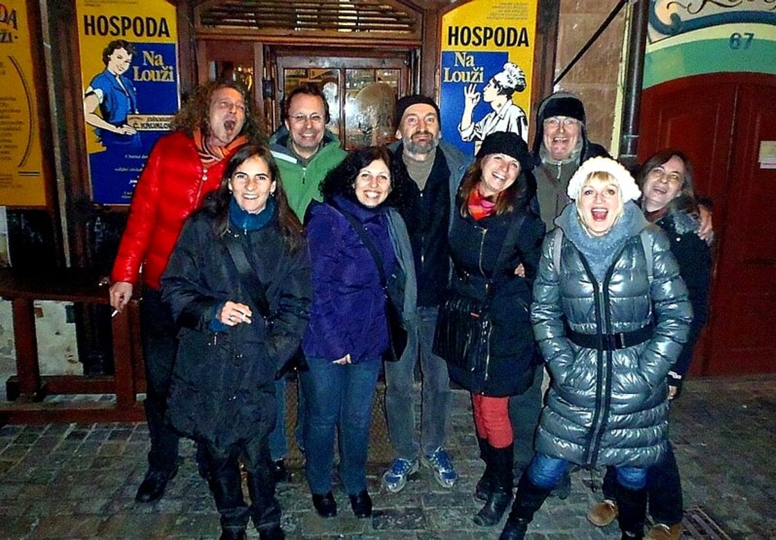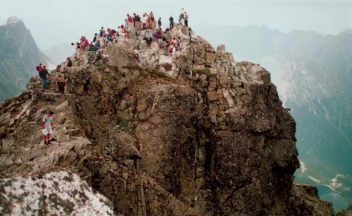 Gerade von M-stetten aus sind es höchstens mal 20 km zur tschechischen Grenze und bis in diese Zeit hatte ich von der anderen Seite keine Vorstellung, außer von tristem „Ostblock- Grau in Grau“. Als ich dann nach Öffnung dieser Grenzen gleich mit meinen Leuten auf Erkundungstour fuhr, war ich Ortsbildfetischist einigermaßen überrascht. Das „Grau“ gabs sehr wohl, aber die vielen so sehr unverschandelten Schmuckstücke von Ortschaften der Tschechoslowakei und Polens hatten es uns angetan. Größtenteils aus Geldmangel hat man diese Perlen dort, wie Telc, Cesky Krumlov, Litomisl, Pilsen, Prag, Wroclaw (Breslau), Krakow, Cicmany, Vlkolinec und Banska Stiavnica von riesigen „Schiachbauten“ verschont. Fortan verbrachten wir viele Wochenenden dort, mit Rafting-Touren an der Moldau, Wanderungen in den Felsen-Labyrinthen des Riesengebirges, Motorrad-Expeditionen in die Fatra oder Berg- und Ski-Touren in der Tatra. Den höchsten Berg Polens „entweihte“ ich gemeinsam mit Waltraud dann in den späteren 90ern. Indem wir bis ca. 1.300 m hoch mit dem Fahrrad rauf konnten, sparten wir Zeit und schafften den Rest bis zum 2.500 m -Gipfel und retour in nur wenigen Stunden. Probleme bekamen wir nur in den Fingern, da die lange und steile Strecke bergab, mit beiden Händen ununterbrochen an den Bremsen des Radls, lästige Krämpfe verursachte. Und einige Male feierten wir in größerer Zahl auch Sylvester dort. Die tschechische Bierkultur, wo man im sogenannten „Hostinec“ extrem süffigen, g’schmackigen und billigen Hopfentrank bekam, hat es uns wahrlich angetan. Wenn nur mehr ein 3 cm „Hansl“ im Glasl war, wurde selbstredend und mit cremigem Schaum ein neues volles gereicht! Wenn auch die politische Entwicklung in diesen Ländern sich jetzt immer besorgniserregender darstellt, wird’s Zeit, dort wieder mal nach dem „Linken“ zu sehen, solange dies noch irgendwie möglich scheint…