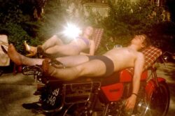 Ich kümmerte mich um Nachschub, nicht nur was Bier- u. Weinvorräte anbelangt, sondern auch den Nachwuchs an leiwanden Leuten vorwiegend aus der Wienerstadt. Martin R, ein solcher, wie auch Monika D, oder Ophelia, wie ich sie nannte und mit der ich noch viel interessanteres teilte, begleiteten mich leidenschaftlich zu allen möglichen Jazz-, Folk- u. ähnlichen Konzerten, wo wir gute Kontakte ergatterten, um bald schon mit ersten derartigen Gigs im oder vor dem Schloss aufwarten zu können. Mit der unprofessionellen aber durchaus sympathischen Werbung hierfür, kamen neue gute Leute raus & ein paar davon, wie eine Wiener Motorradgang, featuring Kurti V, der bald auch als erfolgreicher Gitarrist bei österreichischen Reggae-Bands fremdging, sein Bruder Ernsti, Hömal „Guzzi“ W, legendärer Klobesendesigner und späterer Teilzeitwinzer & Oberkellner und DJ Peterl W blieben. Wie auch Pezi U, mit dem ich heuer, also über 40 Jahre danach, hoffentlich noch samt seiner neu erworbenen 900er Tiger ausfahren werde, sein musizierender Cousin Jimmy und dessen Kompagnon Udo, die irgendwann auch unseren baldigen Karriereleiterreiter und späteren Concertologen Heinz „Hasi“ S einschleusten. Arzt-Lehrling (so ana kau nie schodn!) Otti B aus Laa und ein rauchfangkehrender „wilder“ Michl aus Fünfhaus machten das Kraut endgültig fett. Oder nein, das war dann doch ein äußerst kreatives Mädchenquintett mit Britta, Ute, Barbara, Claudia, Bettina und Maria aus dem nahen Mistelbach.
