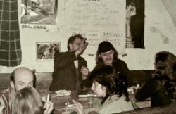Letztere waren so kreativ, dass sie irgendwann mal Helene mitbrachten. Sie hatte es mir angetan! Mit ihr und bei ihr wollte ich bleiben & einige Jahre lang klappte dies auch. Unser freizügiges und liberales Tavernenleben u. -Treiben machte uns Ende der 80er dann aber doch einen „Strich durch die Rechnung“. Auch ihre Schwester Margit hinterließ ihre ehrgeizigen Spuren bei uns. Selbst betätigte ich mich fallweise und leidenschaftlich als Kuppler, allerdings nur so lange, bis sich ein Paar bei Trennung einer 3-jährigen Beziehung, also beide unabhängig voneinander, bei mir beschwerten, ich hätte ihnen 3 Jahre ihres jungen Lebens zerstört. Bei frühen Dylanfesten kamen Leute, die uns sehr bereichern konnten. Karli O, Sozialarbeiter und späterer Egon Erger, zählte dazu wie auch die Klosterneuburger „Altväter“ Rupp und vor allem Izze, der mit seiner Erika (Mundls Tochter Hanni aus dem „Echten Wiener“) auch noch spätere dieser Feste auf Burg Plankenstein heimsuchte. Unser junges Leben bereichert haben damals Bands und Musiker wie Liederlich Spielleut, Merlin, Rosengarten, die Stadtpfeiffer, das Rens Newland-Quartett, Fritz Steiner, Peter Ratzenbeck, Hans Thessink und die Bluespumpm. Vielen Dank nochmal! Nach 3 Jahren mussten wir ausziehen. Als einerseits eines schönen warmen Tages vor dem Schloss nackt Ping-Pong gespielt wurde und die Fliehkräfte beider Geschlechter das ihrige dazu beitrugen, dass sich unsere noblen Gastgeber nicht nur positiv erregten & andererseits ein paar unserer zugedröhnten Konzertbesucher, die, wie auch immer, grölend in den fürstlichen Innenhof gelangten und den Hausherrn mehr als brüskierten. Flennen und entschuldigen nutzte da nichts mehr. Wie schon anderorts beschrieben, wurde ein Vierkanthof in Michelstetten, am Nordhang der Leiser Berge, unser neues Domizil. Wir teilten uns dort die Anlage mit Hermann W, einem besonders netten Bauern und seinem Schweinestall. Wir bereicherten uns gegenseitig, er half uns bei Um- oder Ausbauten mit seiner Gerätschaft und wir, oder ein paar von uns wie Pauli & Eva, die er zärtlich „Schnurlies“ nannte, halfen ihm bei der Feldarbeit. Ruamschean & Weigatschean, statt Unkrautvertilger zu spritzen, gefiel uns. Ich konnte mit Hermanns Trecker fuhrwerken und erlernte sogar Mähdrescher zu fahren. Er achtete dabei akribisch, die verschreckten jungen Feldhaserln zu erspähen und einzusammeln. Nach dem Dreschen brachte er diese wieder heil ins Feld. Unsere beiden zuvor erwähnten „Haserln“ bevorzugten oft ihre Arbeit, ohne Arbeits- oder sonst irgendeiner Kleidung zu verrichten. So gabs auch schon mal den einen oder anderen Auffahrunfall in der angrenzenden Bundesstraße. Der Besitzer des Hofes war ein älterer Holländer, mit dem ich ganz gut und für uns äußerst lukrativ verhandeln konnte. Er selbst bewohnte das (immer noch existente) Wasserschloss. Wasser war damals keines mehr zugegen, wohl aber ein größerer Schilfbereich. Wie wir vermuteten, kam nach dem Ausbaggern einer Fläche von ca. 1000 m2 das Wasser „zurück“ und wir hatten einen wunderschönen Badeteich, der natürlich auch bald von den Kindern des Ortes genutzt wurde. Wir deklarierten ihn natürlich von Anfang an als FKK-Tümpel. Die Kinder hatten kein Problem damit, ihre Badehosen behielten sie aber an. Das Gelände rund um den Teich diente bald als Campingplatz für die Open-Air-Festivals. Nach indianischem Vorbild bauten wir uns auch eine Erdsauna. Der dazugehörige Aufguss fand klarerweise im Teich statt, im Winter allerdings eher in Form einer Schneeballschlacht. Nach einer winterlichen Saunaparty mit gut 40 sich abwechselnden Schwitzern, brannte unsere geliebte Sauna auch ab. Die nachfolgende neugestaltete fiel viel zu korrekt aus, um so gemütlich wie die alte sein zu können. Christa U war nicht nur leidenschaftliche Benützerin letzterer, sie hatte durch ihre jahrelange Dradiwaberl-, Stefan Weber- u. Falco-Erfahrung, eine gewisse Grundimmunisierung, was verhaltensauffällige Zeitgenossen anbelangte. Somit wurde sie die perfekte Wirtin und Mutti unserer Taverne. Unsere liebe Susa hatte das Talent, den dann doch wieder heterogenen Haufen halbwegs konfliktfrei beisammenzuhalten. Ich selbst war schuld, dass es manchmal brenzlig wurde, indem ich unsere Hütte für ausnahmslos alle offen und zugänglich halten wollte, auch für Vorbestrafte und Problemfälle, die sonst überall schon Lokalverbot hatten. Irgendwann krachte es tatsächlich aus diesem Grund. Weiß heut noch immer nicht, gescheit u. zielführend mit sowas umzugehen. Mitte der 80er-Jahre wollte ich endlich mal mit oder ohne Proletenpassion die „Kultband“ Schmetterlinge zu uns einladen. Ich kontaktierte den damaligen Gitarristen und Manager Günter G, der dieses Ansinnen jedoch nicht für so geeignet für diesen Zeitpunkt hielt, er meinte aber, dass es da jetzt was ganz Neues mit dem Willi R als Frontman gäbe, der ja auch einer der wesentlichen Schmetterlinge-Sänger war. Jawohl, der Ostbahnkurti war „geboren“, obwohl die Geschichte damals von einem Comeback oder fast von sowas wie einer Auferstehung erzählte. Ganze 3 Mal erhielten wir seinen fruchtbaren Segen!