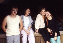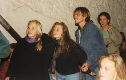 Die Räumlichkeiten im Schloss Niederleis waren bald gefunden, auch da wir zuvor schon Otto’s Disco in diesem Ort frequentierten, fiel uns auf, dass der davor schon als Taverne genutzte Schlosstrakt geräumt und somit frei wurde. Es brauchte nur noch das Verhandlungsgeschick meines Bruders Wolfgang, der mit seinem Bautechnikerjob den hausherrlichen Gräflichkeiten seriös genug erschien und wir zogen ein. Das muss, nach kurzem Gastspiel in einem Ernstbrunner Flüchtlingsheim, so um 79, 80 herum gewesen sein (Otto, der Niederleiser Discowirt, ertrug ohnehin lange genug unsere Spompanadln). Es war auch naheliegend, den Namen „Taverne“ für diesen unseren Jugend- u. Kulturclub zu übernehmen. Rudi G. hielt uns politisch auf Trab und „sauber“, Gabi, Gerda, 2 Ullis, Rosi, Helli, Hedi, Andrea, Hertha und fallweise meine „Schwester“ Susi L. brachten den Spirit, Gemütlichkeit u. Glanz in die Hütte, Wolfi & der aus Laa/Thaya erworbene Johnny, der später mit Hans Hass tauchen ging, kümmerten sich um alles Infrastrukturelle, Individualist Werni U, Harry W, der zuvor schon als allerschlimmster Ernstbrunner Karriere machte, Fred F, unser „Professor“ Wolfgang S, Yes-Fan schon lange vor „Owner Of A Lonely Heart“, der detaiIgenau alles über damalige Rock- u. Jazzrock-Bands wußte und Radlspezialist Seraphino T unterstützten sie dabei, Manfred „Huadla“ B rettete einen vorm Schloss verunfallten aus seinem brennenden Rover, Heinzi S, Gerhard Kwa, Gerhard „Grunz“ Kowa und Andi R waren die erfahrensten Musikanten unter uns, Roman M. brachte seine Kawa ..und ein paar andere lustige KollegInnen sonst was mit. Mit Reinigungs- und Bar-Diensten etc. wechselten wir uns ganz gut ab. Mit dem Eintreffen der supernetten Oldtimer-Bikerin Christine S und den einfallsreichen Geschwistern Gabi und Günther P wurden wir fast schon sowas wie homogen…