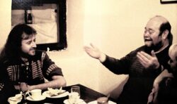 Wilfried R, Kurzzeitkeyboarder unserer Hausband und mit seiner Freundin Ulli späterer Erfinder von „Wir Sind Kaiser“, animierte mich zunehmend fremd zu gehen. Nach gut 10 Jahren selbstverschuldeten Kulturbetriebes im Herzen des Weinviertels, musste ich doch wohl fremd gehen und mit den Jazz-Festivals von Wiesen & Saalfelden gelang das auch. Entsprechende und ähnliche Veranstaltungen in Laa an der Thaya und Mistelbach, wo die Kultodrom-Leute wirklich gutes Programm auf die Beine stellten, wie auch jene des Waldviertels ala Waidhofen und Gutenbrunn, die mir ihre Lokalmatadore Bluespumpm auch persönlich näherbrachten, trugen das ihre dazu bei. Zappa C, der Sänger und Gitarrist und seine Erika, luden Wilfried und mich des Öfteren auf ihren Hof bei Heidenreichstein, wo wir bis weit nach Mitternacht freudig das übliche taten. Nur war halt auch vor 6 in der Früh schon Tagwache! Es musste gemolken, gefüttert und ausgemistet werden. Ich entschied mich freiwillig für letzteres. Oh doch, es war leiwand, aber Waldviertler wurde ich dann doch nicht! Ist ja auch zu kalt dort, oder!? Stattdessen machte ich bald immer öfter auf Teilzeitmistelbacher und dank „meinem“ Wirten Reinhard Kruspel und seinem damals ins Leben gerufenen Alten Depot konnte ich dem Kulturbetrieb auf sehr abwechslungsreiche Weise treu bleiben. Mille Grazie, lieber Padrone! Mit Hamish Imlach, dem „Biggest Man In Scottish Folkmusic“, der einst mit John Martin jammte, verband mich auch danach noch eine besondere Freundschaft. Er besuchte mich mehrmals mit seiner ebenso singenden Frau Muriel Graves und oft auch mit dem einst mit Van Morrison in „Them“ spielenden Iren Den Warrick in Wien, wo es Gigs bei All-Star-Festivals oder im Metropol wie auch in der Kulisse gab. Wir fuhren gemeinsam mit Den‘s u. auch meiner Freundin ins mir vertraute Weinviertel, suchten ein gemütliches kleines Häuschen in der Nähe von Wirt oder Heurigen für meine Freunde und einen möglichst windschiefen Turm, wie den des „Lupo“ oder wie den Farol von Tavira, für uns. Wir fanden weder noch, aber die stetige Suche, bei der wir auch das fruchtbare Oberschoderlee (mrhban Aladin!) kennenlernten, machte uns allen unheimlichen Spaß. Als denkbar besten Ersatz fanden wir Friedl Umschaid‘s Presshausheurigen, wo wir bis zum Morgengrauen Sessions spielten, kurz bevor man dort Nonsens zu erfinden begann. Natürlich musste ich dieses „varuckte“ Dorf auch H.C.Artmann zeigen, der bei Wohlgefallen an dortigen Weinen, nicht nur aus seiner „Schwoazn Tintn“ las. Und Hamish? Wie mir Muriel nur wenige Jahre später erzählte, beschloss er den Jahreswechsel mit ihr, mit guten Getränken und mit John Lennon zu verbringen. Um Mitternacht prositete er zu letzterem, der mittels Fernseher, quasi aus dem Jenseits strahlte, schlief zufrieden lächelnd ein und wachte nicht mehr auf…