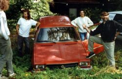 Oft wurden wir angezeigt und die Gendarmerie musste notgedrungen amtshandeln am Hof, nicht wegen der Promille, da gabs ja großzügige Toleranzen, sondern aus lärmtechnischen Gründen. Wir waren halt wirklich sehr oft und sehr gerne zu laut. Die Anzeigen kamen allerdings von den Wochenend-Siedlern, die ihre „unheilige“ Ruhe dort wollten und nicht von den Ortsansässigen. Ganz im Gegenteil, diese wurden von ersteren ebenfalls angezeigt, wenn sie bestens gelaunt ihren Maibaum aufstellten, die Feuerwehr feierten oder Kirtag hielten. Die Leute von Michelstetten sind uns, trotz erwähnter Kameradschaften, bald ans Herz gewachsen. Viele kamen zu unseren Veranstaltungen, brachten sich auch auf vielfältige Weise ein, indem sie ihr Kunsthandwerk wie Besenbinden, Korbflechten und ähnliches vorführten und mittels Workshops auch weitergaben. Die Verpflegung am Hof kam großteils aus örtlicher Produktion und stammte nicht nur von Weinbauern und Schnapsbrennern. Der Heurige und das Wirtshaus, das zugleich Fleischerei und Tankstelle war, trugen das ihre zur Sättigung auch unserer unzähligen auswärtigen Gäste bei. Den eigentlich sehr netten, aber autoritären und manchmal als griesgrämig wahrgenommenen Wirten, der selten die Miene verzog, ertappte ich mindestens 2 x herzhaft lachen. Einmal, als ich ihn fragte „Herr Ochta, hättn se aa wos vegetarisches?“ und ein andermal bei einem Dylanfestival, als ich gerade mit 2 frisch erworbenen Dopplern Ringlottenbrand Richtung Hof stapfte und er sich mit seinem Ford Granada und quietschenden Reifen vor mir einschleifte, das Fenster runterkurbelte und mir ein verschwitztes und breitgrinsendes „Rekordumsotz!“ zurief.