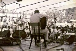 1985 begannen wir mit dem Michelstetten-Fest, welches jährlich mit vielfältiger kultureller Beteiligung ein aktuelles Hilfsprojekt unterstützen sollte, egal ob im Land oder sonst wo. Wir begannen mit „Austrian Wings For Life“, um kleine Flugzeuge mitzufinanzieren, die möglichst nachhaltig zur Ernährungsgewährleistung in entlegenen Gebieten Burkina Fasos beitrugen. 1986 – Open-Ohr-Festival, 87 – Für Greenpeace, 88 – für Nicaraguanische Bauern, die von den US-gesponserten Contras vertrieben wurden. Und natürlich hatten wir auch so manch heimisches Projekt unterstützt. Global 2000, Amnestie International und ähnliche NGO’s bekamen ihren Stand, Künstler und Kreative der nahen, wie auch ferneren Umgebung und natürlich die Projektbetreiber präsentierten das Ihre und kulinarisch wurde es immer vielseitiger, nicht zuletzt auch durch einen gemütlichen Makrobioten-Kiosk. Da wurde unser Anwesen erstmals ordentlich gestürmt. Unter Federführung des bei einem Dylan-Festival gestrandeten Roman T hatten wir auch eine besonders lustige und auch informative Vereinszeitung namens Tav-Tav, bei und in der sich jeder beteiligen konnte. Roman selbst, der, da seine damalige Freundin und talentierte Keramikerin Karin laut unserem Hermann auch eine Schnurli war, von mir deshalb bald zum Burli befördert wurde, erfand das Cover und die witzigen Cartoons (unter anderem) mit Skippy, dem Buschbergkänguru, welches die australische Herkunft unseres „Kassiers“ Heinz oder Heimito S erklärte. Gerhard K lieferte kuriose Geschichten und musikalische Beiträge, Eva beschrieb ganz witzig interne Angelegenheiten. Mabi B steuerte ganz spezielle, aber sehr geschätzte Verrücktheiten bei, gemeinsam mit späterem Xi-berger (kein Bild, kein Ton, wir kommen schon) Scheraah, mit „Irrwitz“ Erwin, Walter, Hanni, Betty samt lustigem Bruderherz, 2 Helmuttis, Datzi, Sabine, 2 sehr leiwanden Marions, Tina, Tschina, Gini, Renate, noch einer Ulli u. Helli samt Rambo und unserem vollzeitfleißigen „Teilzeit-Strizzi“ Fredl T auch abseits dieses Blattes! Martin und Johnny aus der Zaya-Hauptstadt brachten „Elvis“ und Schlagzeug an unsere Buschbergflanken, Tänzer und Clown Mischa brachte sein sonniges Gemüt wie auch Optimismus und späterer Wiener Grünpolitiker Pezi D und „die“ Didi ergänzten unseren wilden Haufen indem sie unterschiedlich erfolgversprechend auf die selbe Angebetete abfuhren. Erwähnter Mabi, damals Floridsdorfer, kreierte unsere „Hängenden Gärten“ beim Teich und lieferte sich einst auch fast sowas wie ein Duell. Als ein später noch erwähnter bekannter und gefeierter Jazzgitarrist bei uns Mitglied wurde, war letzterer auf Urlaub und bekam dies nicht mit. Als er wieder einlangte, sah er eine ihm nicht bekannte Figur hinter der Bar mit Schnaps hantieren und begann ihn strengstens zu tadeln, was er hier verloren hätte, was der andere mit „Gscheidmasta, bist deppat, i bin Mitglied! Oba wer oda wos wüstn du sei??“ beantwortete. „i bin Mit-Glied!!“, „na daunn zag her die Ruam!“ gings hin u. her, bis sich beide mit ihrer „Rübe“ in der Hand gegenüberstanden, sich wenig später um den Hals fielen und den Abend leise weinend mit dem zuvor geköpften Obstler fortsetzten. Schlapfi J, unser auch nicht unlustiger Techniker, gab erstaunlicherweise eher den Vernünftigen dort, was man von unseren liebenswerten Geistern Waldi & Bergi nicht ganz so sehr behaupten konnte. Die „Bunkies“ und die „Seifangs“, ja das gab‘s auch, die sind als Paare gekommen und haben’s als solche unbeschadet überstanden. Sie wurden unsere Schrebergärtner. Und Günzül „Entengünther“ S blieb uns nach einem lustigen 2CV-Treffen am Hof. Ein Kleinbustreffen (ich hatte da noch Hannibal, mein buntes 7-Sitzer- und Reise-Ei) wurde auch fast nur von Enten mit allen möglichen und unmögliche Auf- und Draufbauten frequentiert. Nachdem ich mir die „Sagen des Weinviertels“ reingezogen hatte, brachte ich manchmal selbst fabrizierte Sagen, die in Michelstetten, von seinen Bewohnern und natürlich auch von uns selbst handelten, blede G’schichtn quasi, ins Tav-Tav. Und politisches Zeug natürlich! Wie in vielen heimischen Gemeinden standen (und stehen noch immer) jede Menge Kriegerdenkmäler umadum und in manchen Fällen hießen die auch Heldendenkmäler. Jene, die damals für die Nazis in den Krieg zogen und fielen, bezeichneten wir durchaus auch als Opfer, aber Helden, sofern dieser Begriff überhaupt Sinn machen sollte, waren andere, wie Franz Jägerstätter, also vor allem Deserteure und Wehrdienstverweigerer. Also beschlossen wir in M’stetten ein Wehrdienstverweigerer-Denk-mal! zu errichten! Unser Wolfgang H, schwer begabter Maler aus Stockerau, der inzwischen ein vielbestauntes Fresko und das Portal der Bäckerei des Ortes gestaltete, mauserte sich mit allgemeiner Beteiligung zum Bildhauer hierfür. Es wurde ein Hinkelstein mit einem von Sonnenstrahlen geschmolzenen Gewehr. Das entsprechende Fest zur Einweihung fiel ganz besonders aus. Ein paar Hundert Leut samt einiger Mitglieder Wiener Zivildienst- u. Wehrdienstverweigerer-Organisationen feierten bei erlesenster musikalischer Begleitung durch Charly Ratzer & seinem Quintett (featuring Fritz Pauer u. Mario Lima). Karli lernte ich bald nach seiner Rückkehr aus den Staaten, wo er mit den „Göttern“ und Innen wie Chaka Khan, Joe Farrell, Art Farmer und Chet Baker aufgeigte, in unser aller Aladin‘s Celeste kennen und mögen. Ich nahm ihn mit hinaus und er mochte sofort Michelstetten wie auch unseren Kulturverein, dem er bald und fast 2 Jahre lang auch beitrat. Somit hatten wir mehrere geniale Konzerte mit ihm in unterschiedlichen Besetzungen. Unvergesslich blieb uns seine Session mit Hans Thessink, Peter Ratzenbeck und Ripoff Raskolnikov beim 86er Dylan-Festival. Ihr gemeinsames beinahe halbstündiges „Don’t Think Twice, it’s allright“ mit den Spezifitäten aller 4 aus Blues, Jazz, Rock & Folk war wirklich den