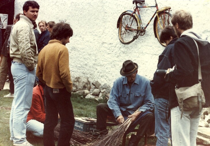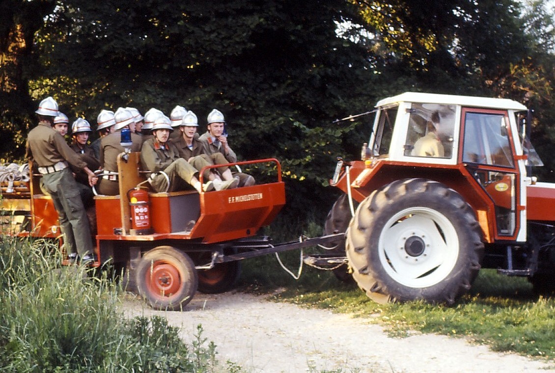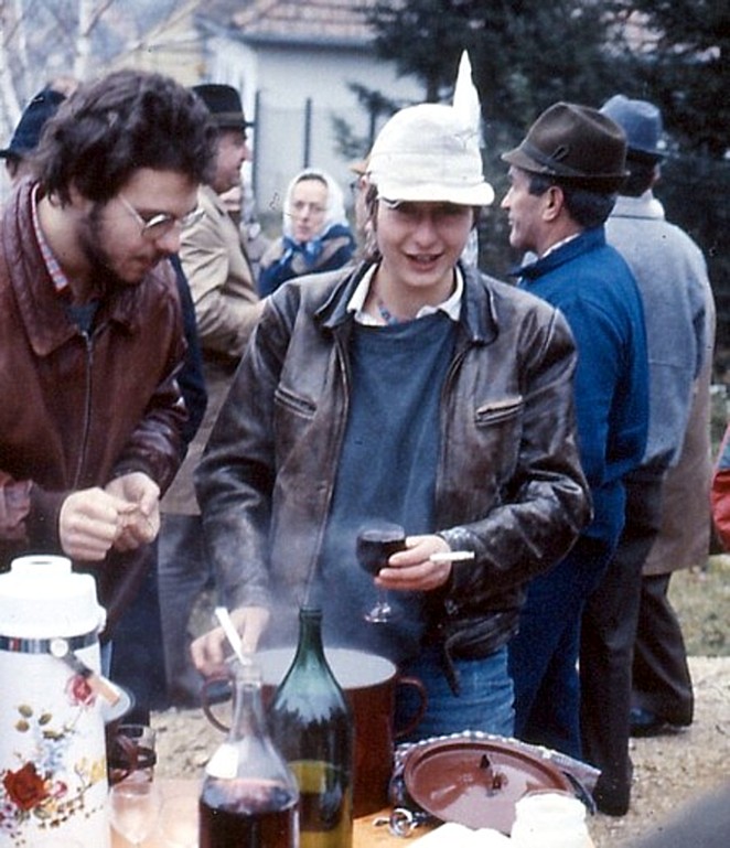 Oft wurden wir angezeigt und die Gendarmerie musste notgedrungen amtshandeln am Hof, nicht wegen der Promille, da gabs ja großzügige Toleranzen, sondern aus lärmtechnischen Gründen. Wir waren halt wirklich sehr oft und sehr gerne zu laut. Die Anzeigen kamen allerdings von den Wochenend-Siedlern, die ihre „unheilige“ Ruhe dort wollten und nicht von den Ortsansässigen. Ganz im Gegenteil, diese wurden von ersteren ebenfalls angezeigt, wenn sie bestens gelaunt ihren Maibaum aufstellten, die Feuerwehr feierten oder Kirtag hielten. Die Leute von Michelstetten sind uns, trotz erwähnter Kameradschaften, bald ans Herz gewachsen. Viele kamen zu unseren Veranstaltungen, brachten sich auch auf vielfältige Weise ein, indem sie ihr Kunsthandwerk wie Besenbinden, Korbflechten und ähnliches vorführten und mittels Workshops auch weitergaben. Die Verpflegung am Hof kam großteils aus örtlicher Produktion und stammte nicht nur von Weinbauern und Schnapsbrennern. Der Heurige und das Wirtshaus, das zugleich Fleischerei und Tankstelle war, trugen das ihre zur Sättigung auch unserer unzähligen auswärtigen Gäste bei. Den eigentlich sehr netten, aber autoritären und manchmal als griesgrämig wahrgenommenen Wirten, der selten die Miene verzog, ertappte ich mindestens 2 x herzhaft lachen. Einmal, als ich ihn fragte „Herr Ochta, hättn se aa wos vegetarisches?“ und ein andermal bei einem Dylanfestival, als ich gerade mit 2 frisch erworbenen Dopplern Ringlottenbrand Richtung Hof stapfte und er sich mit seinem Ford Granada und quietschenden Reifen vor mir einschleifte, das Fenster runterkurbelte und mir ein verschwitztes und breitgrinsendes „Rekordumsotz!“ zurief.