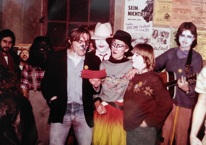 Solche Dylanfeste fielen von Jahr zu Jahr zugeströmter und bald schon international aus. In den damaligen internetlosen Offline-Zeiten lags hauptsächlich an der Mundpropaganda und wenigen Medien, die unsere Schpompanadln verbreiteten. Wir hatten Deutsche, wie Michael und Uschi Lohse, denen ich auch persönlich zu großem Dank verpflichtet bin, Italiener, wenige Franzosen, einen Briten und sogar ein paar Kärntner zu Gast. Die Quartiere des Ortes und der Umgebung wie auch der Campingplatz waren gefüllt. Ich wollte eigentlich nur feiern, an der Bar, mittels Session beim Lagerfeuer oder sonst wie, aber Magnet für die meisten war Live-musik, Lesungen, Beiträge selbsternannter Dylanologen, Bootlegs und die berühmten Wackelvideos früherer Konzerte des „Alten“. Umso genialer fand ich es, dass Graham, der Engländer, ab dem 2. Tag des Festes nur mehr mit unserem Bauern Hermann, der ihn (wie auch unseren Ratzer-Karli) liebevoll „Oberlehrer“ nannte, helfend am Feld und anschließend trinkend in dessen Keller anzutreffen war. Der eine sprach kein Englisch, der andere null deutsch, sie verstanden sich prächtig. Nach Mitternacht trafen beide per Traktor und gemischtsprachig singend am Hof ein. Im darauffolgenden Jahr gestaltete sich Grahams erster Tag schon so…