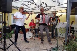 Nach Jahren des Konsumierens und des Veranstaltens von Musik, wuchs die Lust, auch selbst aktiv zu werden. Anfangs nur sehr lose und bei speziellen Anlässen (haha, heute halt ich’s wieder so!) und mit Leuten, mit denen ich ohnehin zu tun hatte, danach vorwiegend mit Musikern aus Mistelbach und aus Tavernenbeständen. Da gab‘s die Clean-Cut-Kids, die Gipfelschnippers und Abseits, but Who Cares? Gütiger Weise ebbte die vor ein paar Jahren aufgekommene Debatte über kulturelle Vereinnahmung wieder etwas ab. In meinem Fall, nachdem ich schon sehr früh mit englischer und amerikanischer Musik sozialisiert war, wäre es vermutlich kulturelle Vereinnahmung gewesen, hätte ich mich an heimischer Blasmusik, dem Austropop, oder dem Wienerlied vergriffen. Gitarre hatte ich als Pflichtfach im Gym gerlernt, gelernt aber nur insofern, als dass ich die um 2 Jahre oder Klassen älteren Kollegen, wie den genialen Christian „Jetty“ S, der mit seinen Brüdern damals schon in wilden Bands spielte, gut beim außerschulischen Praktizieren beobachtete und ihn bald auch versuchte zu imitieren. Die klassischen, spanischen Stücke des Unterrichts behandelte ich eher stiefmütterlich und so war’s nicht weiter verwunderlich, dass ich da in der 7ten einen Nachzipf ausfasste. Ausgerechnet der von mir so gefürchtete Mathe-Professor als Beisitzer hatte den prüfenden Gitarre-Prof. vollgesudert, mich durchkommen zu lassen. Ich hatte denen ungefähr 8 Takte vom Blatt vorgespielt, bis ich völlig ahnungsloser bald sehr deutlich davon abwich und mich mehr Jetty’s Ideen bis hin zum schrägen Schlussakkord widmete. Der üblicherweise milde Prüfer schlug grantig die Hände über dem Kopf zusammen, dem strengen Mathematiker gefiels. Genügend! Das spanische, mit Nylonsaiten bespannte Instrument blieb meine Lieblingsbewaffnung für unzählige Lagerfeuer oder romantischem Sonstwas. Auf der Suche nach interessanter heimischer Rootsmusic, also, was die Nazis noch unverbrannt oder versehentlich der Nachwelt überließen, stießen wir hauptsächlich im alpinen Bereich an mitreißende und quetschnlastige Perlen, jedoch mit meist harmlos braven oder Bla-bla-Texten. Im Nordosten des Landes war’s mehr die von Böhmen & Mähren beeinflusste oder stammende Blasmusik, am fündigsten wurden wir noch beim Wienerlied. Aber irgendwie gab’s da ein zu hinterfragendes Vakuum. Als wir Anfang 90 zu mehrt im slowakischen Cizmany zum Sylvestern antraten, mussten wir uns auch musikalisch mit einer örtlichen, wie auch mit einer Gruppe aus Polen mit Liedern unserer jeweiligen Heimat matchen. Unsere Konkurrenten kannten und konnten allesamt ihre fetzigen Lieder, die sie vielstimmig von sich gaben, während wir, obwohl gottlob mit Profi Gerry S bestückt, lange grübelten, bis wir fragmentweise und gerade noch sowas wie „Muss i denn“ herausbrachten, bis wir schließlich doch noch halbwegs erleichtert mit Danzer und Ambros loslegten. Aber selbst da konnte jeweils nur einer oder ein halber zweiter von uns den Text. Damals entwickelte sich nicht nur bei mir der Ehrgeiz, spannendere und musikalisch verwertbare Geschichten auszugraben sowie auch „verstaubte“ Instrumente vor dem Vorhang zu holen. Und spätestens, als Paul Simon mit „Graceland“ die Ziehharmonika in südafrikanischen Groove gepackt hat, war ich neugierig auf diese geworden. Nach vielen, aus meiner Sicht, wunderbaren Rehabilitierungen dieses und anderer noch älterer Instrumente, sieht man leider immer mehr, dass sich die reaktionäre Ecke billig, aber bestverdienend, daran bedient. Hab gerade, also im Herbst 2025, vernommen, dass das Akkordeon zum Instrument des Jahres gewählt wurde! Mit den Schnippers hatten wir damals den Ehrgeiz, traditionelle wie auch hiesige Roots in Rock’n Roll bis Reggae zu packen und mit eigenen Texten und Geschichten zu versehen. No Gringos, unsere Wiener Crossover-Abteilung mit Tom Telepak u. Mozartbandit Wolfgang Staribacher und Mistyboyz mit Jazzgitarrero Chris Jilli u. Marc „The Finger“ Kastner als Mistelbacher All-Star-Variante folgten. Und Honky-Tonk-Monks nannten wir noch eine Coverband für besondere Anlässe. Der „Teufelsgeiger“ Adula Ibn Quadr beehrte uns des Öfteren als Gast und mit ihm wollte ich ab Ende 90 eine handliche Combo haben, die für unterschiedlichste Konzerte, Feste & Festivals, sowohl eigene als auch Musik von weiß Gott wo, spielen kann und gar nicht mal so unpopulär tun wir das gemeinsam mit Stefan B u. Peter S bis jetzt immer noch. Als ich mal als Aushilfe bei den Filz-Brüdern im Wiener Carina aufspielte, bemerkte ich eine dunkle Schönheit im Publikum, die ganz anders und viel geschmeidiger vibrierte als die meisten anderen Anwesenden, die eher den von Candy Dulfer einst beschriebenen und bespotteten „Wiesen-Shuffle“ zelebrierten. Ich hatte den Eindruck, dass sie innerlich mitsang und fragte sie unverschämt, ob sie das nicht auch äußerlich und auf der Bühne tun wolle. „No, thanks, i’m to shy for this!“ kam retour, aber während der übernächsten funkigen Bluesnummer, sprang sie ungefragt auf die Bühne und entriss mir das Micro. Eine unglaubliche Wucht und mir war schnell klar, dass ich zuvor noch kaum eine tollere Sängerin gehört hatte als sie, geschweige denn, mit einer derartigen Gigantin gespielt zu haben. Sie war der Karibik entstammend und lebte zuvor als Gospel- und Background-Sängerin für internationale Größen und Größinnen wie Gloria Gaynor u. Eric Clapton in London, bevor sie nach Wien kam und gleiches auch für Mike Otis, Ambros, Ostbahn u. Supermax tat. Sie hieß und heißt „immer“ noch Betty Semper und wurde bald zur besten R&B- und Soulsängerin Österreichs gewählt. Ich trommelte meinen langjährigen Trommler Wickerl P samt unserem Bassisten Peter S zusammen, holten uns noch Ousmane M’Boup mit seiner Djembe sowie den genialen Andi A als Stromruderer und nannten sich gemeinsam mit Betty „The Fonkvibrators“. Im Laufe der Jahre änderte oder ergänzte