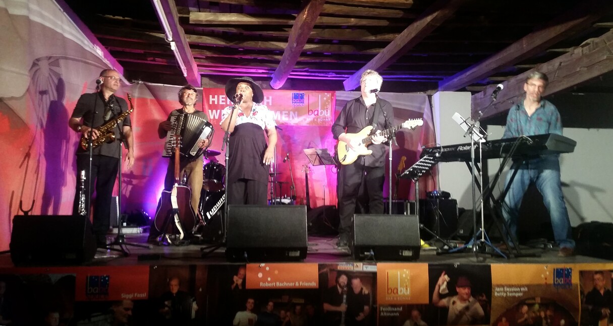 Nach Jahren des Konsumierens und des Veranstaltens von Musik, wuchs die Lust, auch selbst aktiv zu werden. Anfangs nur sehr lose und bei speziellen Anlässen (haha, heute halt ich’s wieder so!) und mit Leuten, mit denen ich ohnehin zu tun hatte, danach vorwiegend mit Musikern aus Mistelbach und aus Tavernenbeständen. Da gab‘s die Clean-Cut-Kids, die Gipfelschnippers und Abseits, but Who Cares? Gütiger Weise ebbte die vor ein paar Jahren aufgekommene Debatte über kulturelle Vereinnahmung wieder etwas ab. In meinem Fall, nachdem ich schon sehr früh mit englischer und amerikanischer Musik sozialisiert war, wäre es vermutlich kulturelle Vereinnahmung gewesen, hätte ich mich an heimischer Blasmusik, dem Austropop, oder dem Wienerlied vergriffen. Gitarre hatte ich als Pflichtfach im Gym gerlernt, gelernt aber nur insofern, als dass ich die um 2 Jahre oder Klassen älteren Kollegen, wie den genialen Christian „Jetty“ S, der mit seinen Brüdern damals schon in wilden Bands spielte, gut beim außerschulischen Praktizieren beobachtete und ihn bald auch versuchte zu imitieren. Die klassischen, spanischen Stücke des Unterrichts behandelte ich eher stiefmütterlich und so war’s nicht weiter verwunderlich, dass ich da in der 7ten einen Nachzipf ausfasste. Ausgerechnet der von mir so gefürchtete Mathe-Professor als Beisitzer hatte den prüfenden Gitarre-Prof. vollgesudert, mich durchkommen zu lassen. Ich hatte denen ungefähr 8 Takte vom Blatt vorgespielt, bis ich völlig ahnungsloser bald sehr deutlich davon abwich und mich mehr Jetty’s Ideen bis hin zum schrägen Schlussakkord widmete. Der üblicherweise milde Prüfer schlug grantig die Hände über dem Kopf zusammen, dem strengen Mathematiker gefiels. Genügend! Das spanische, mit Nylonsaiten bespannte Instrument blieb meine Lieblingsbewaffnung für unzählige Lagerfeuer oder romantischem Sonstwas. Auf der Suche nach interessanter heimischer Rootsmusic, also, was die Nazis noch unverbrannt oder versehentlich der Nachwelt überließen, stießen wir hauptsächlich im alpinen Bereich an mitreißende und quetschnlastige Perlen, jedoch mit meist harmlos braven oder Bla-bla-Texten. Im Nordosten des Landes war’s mehr die von Böhmen & Mähren beeinflusste oder stammende Blasmusik, am fündigsten wurden wir noch beim Wienerlied. Aber irgendwie gab’s da ein zu hinterfragendes Vakuum. Als wir Anfang 90 zu mehrt im slowakischen Cizmany zum Sylvestern antraten, mussten wir uns auch musikalisch mit einer örtlichen, wie auch mit einer Gruppe aus Polen mit Liedern unserer jeweiligen Heimat matchen. Unsere Konkurrenten kannten und konnten allesamt ihre fetzigen Lieder, die sie vielstimmig von sich gaben, während wir, obwohl gottlob mit Profi Gerry S bestückt, lange grübelten, bis wir fragmentweise und gerade noch sowas wie „Muss i denn“ herausbrachten, bis wir schließlich doch noch halbwegs erleichtert mit Danzer und Ambros loslegten. Aber selbst da konnte jeweils nur einer oder ein halber zweiter von uns den Text. Damals entwickelte sich nicht nur bei mir der Ehrgeiz, spannendere und musikalisch verwertbare Geschichten auszugraben sowie auch „verstaubte“ Instrumente vor dem Vorhang zu holen. Und spätestens, als Paul Simon mit „Graceland“ die Ziehharmonika in südafrikanischen Groove gepackt hat, war ich neugierig auf diese geworden. Nach vielen, aus meiner Sicht, wunderbaren Rehabilitierungen dieses und anderer noch älterer Instrumente, sieht man leider immer mehr, dass sich die reaktionäre Ecke billig, aber bestverdienend, daran bedient. Hab gerade, also im Herbst 2025, vernommen, dass das Akkordeon zum Instrument des Jahres gewählt wurde! Mit den Schnippers hatten wir damals den Ehrgeiz, traditionelle wie auch hiesige Roots in Rock’n Roll bis Reggae zu packen und mit eigenen Texten und Geschichten zu versehen. No Gringos, unsere Wiener Crossover-Abteilung mit Tom Telepak u. Mozartbandit Wolfgang Staribacher und Mistyboyz mit Jazzgitarrero Chris Jilli u. Marc „The Finger“ Kastner als Mistelbacher All-Star-Variante folgten. Und Honky-Tonk-Monks nannten wir noch eine Coverband für besondere Anlässe. Der „Teufelsgeiger“ Adula Ibn Quadr beehrte uns des Öfteren als Gast und mit ihm wollte ich ab Ende 90 eine handliche Combo haben, die für unterschiedlichste Konzerte, Feste & Festivals, sowohl eigene als auch Musik von weiß Gott wo, spielen kann und gar nicht mal so unpopulär tun wir das gemeinsam mit Stefan B u. Peter S bis jetzt immer noch. Als ich mal als Aushilfe bei den Filz-Brüdern im Wiener Carina aufspielte, bemerkte ich eine dunkle Schönheit im Publikum, die ganz anders und viel geschmeidiger vibrierte als die meisten anderen Anwesenden, die eher den von Candy Dulfer einst beschriebenen und bespotteten „Wiesen-Shuffle“ zelebrierten. Ich hatte den Eindruck, dass sie innerlich mitsang und fragte sie unverschämt, ob sie das nicht auch äußerlich und auf der Bühne tun wolle. „No, thanks, i’m to shy for this!“ kam retour, aber während der übernächsten funkigen Bluesnummer, sprang sie ungefragt auf die Bühne und entriss mir das Micro. Eine unglaubliche Wucht und mir war schnell klar, dass ich zuvor noch kaum eine tollere Sängerin gehört hatte als sie, geschweige denn, mit einer derartigen Gigantin gespielt zu haben. Sie war der Karibik entstammend und lebte zuvor als Gospel- und Background-Sängerin für internationale Größen und Größinnen wie Gloria Gaynor u. Eric Clapton in London, bevor sie nach Wien kam und gleiches auch für Mike Otis, Ambros, Ostbahn u. Supermax tat. Sie hieß und heißt „immer“ noch Betty Semper und wurde bald zur besten R&B- und Soulsängerin Österreichs gewählt. Ich trommelte meinen langjährigen Trommler Wickerl P samt unserem Bassisten Peter S zusammen, holten uns noch Ousmane M’Boup mit seiner Djembe sowie den genialen Andi A als Stromruderer und nannten sich gemeinsam mit Betty „The Fonkvibrators“. Im Laufe der Jahre änderte oder ergänzte