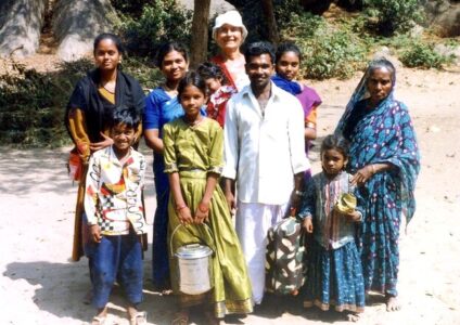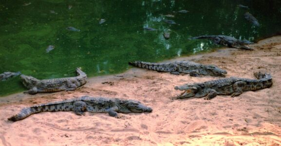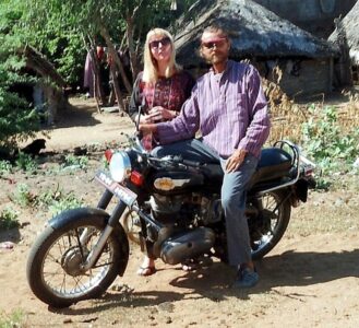 Ein Jahr später begab ich mich nochmals dorthin, mit meiner Mutter im Gepäck, die sich wünschte, nach langer Zeit endlich mal ihren Buben, meinen Bruder, treffen zu können. Er befand sich gerade wieder im Süden, allerdings nur mehr sehr kurz, da er schon den Umzug in den Norden nach Darjeeling vorbereitete, um dort seinen Tempel zu bauen. Für Muttern hatten er und Karin noch ein Bett übrig, umgeben von Spinnen, Skorpionen, Ratten, eh ungiftigen Schlangen und spirituellen Aufgaben(!). Ich schnappte mir wieder die Enfield und erkundete erstmals Kerala im Südwesten. Am Kovalam-Beach des Indischen und viel türkisblaueren Ozeans gönnte ich mir eine Schnorcheltour, nicht ohne dabei zu sparen. So wurde mir ein älterer Taubstummer mit Turban und Lendenschurz zugeteilt, mit dem ich zunächst 2 Baumstämme zusammenbinden musste, um danach damit knieend und mit morschen Brettln als Paddel in die unruhige See stach. Mehrmals ging ich dabei unfreiwillig über Board und bald konzentrierte ich mich mehr ans Festhalten, anstatt armselig zu paddeln. Und irgendwann, nachdem ich meinen „Kapitän“ schon voller Fragezeichen anstarrte, meinte er schließlich „h,h,h“ und so was wie „grwxxx“, deutete und fuchtelte nach unten und überließ mich den Tiefen. Die geliehene Schnorchel-Brille war ausnahmsweise nicht angelaufen und ich befand mich völlig ungetrübt inmitten zahlloser Haie! Okay, es waren offenbar selbst ängstliche Katzenhaie, aber als über-1-Meter-Prügel, machten die durchaus auch was her. Sonst war da nur geringfügig und wenig spannendes Kleinvieh und ich blieb dann eigentlich nur deshalb länger im Wasser, um die anstrengende Rückruderei hinauszuzögern. Am Strand gabs schon damals einige nette, fast schon touristische, Lokale, schließlich musste ich das Erlebte erzählen und nicht alle waren dort taubstumm. Als ich nach einer Woche, nur kurz vor Bruders Übersiedlung, meine Mutter wieder in Empfang nahm, lobte sie lautstark ihren Großen Gott, fuhr mir auf meiner Enfield zu einer Krokodilfarm und erfreute sich dankbar wie nie zuvor an meiner Gegenwart…