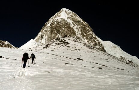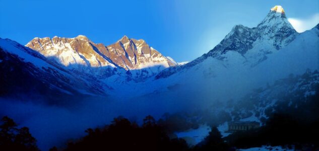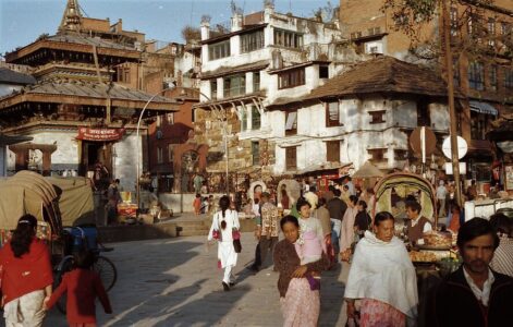 Als ich in Delhi eintraf, erfuhr ich rasch von der Verschiebung des Weiterflugs nach Kathmandu wie auch den Grund dafür. Heftige Regenfälle und Überschwemmungen legten die nepalesische Hauptstadt kurzfristig lahm. Tags darauf gelangte ich dennoch hin und ich pirschte mich durch die Aufräumarbeiten in die viel gepriesenen Sehenswürdigkeiten wie hauptsächlich buddhistische Tempel diverser Anhöhen, Schreinen, Stupas und Pagoden. Mit einer beim Verharren am Delhi-Airport kennengelernten Slowenin besuchte ich auch die historische Kaiserstadt Bhaktapur samt gastronomischer Infrastruktur. Ziel war allerdings das höchste und mächtigste Gebirge der Welt, also nutzte ich die nächste Gelegenheit um mit einem Helikopter, tieffliegend wie ein Huhn und mit bester Aussicht auf die vor allem am Reisfeld arbeitenden Menschen, mit schneebedecktem Himalaya am Horizont, in das ca. 2.800m hoch gelegene Bergdorf Lukla zu kommen. Von dort aus wanderte ich für 2 Wochen über das Sherpadorf Namche-Bazar und dem Tengboche-Kloster, vorbei am heiligen Berg Ama Dablam bis in das Basislager des Mount Everest. An der 8.500m hohen Lotse-Flanke bis zu Mera- u. Islandpeak, zum wunderschönen Gokyo-Lake und auf den dem Mount Pumori benachbarten Kala Patthar, mit perfektem Blick auf den Sagarmatha genannten Everest. Am Weg dorthin schlief ich gut und günstig bei Sherpas, deren aufgeweckte und nicht englischsprechende Kinder mich liebevoll „Pizza“ nannten. Die einzigartige Szenerie und das klare tiefblau wolkenlose Wetter mit frischestem tiefem Neuschnee hatte natürlich ein Vorspiel. Schon beim Aufstieg kamen mir mehrere mittels Ackjas oder sonstigen Bahren violett-gefrorene Leichen entgegengetragen, nachdem es zuvor dort wider Erwarten (vermutlich während des Regens in Kathmandu) 3 Tage lang durchgeschneit hat und Bergsteiger eingekesselt wurden. Stellenweise war es nur möglich über größere Steine im Flussbett entlang weiterzukommen, dafür konnte ich nebst meinem in Namche Bazar kennengelernten Bergkameraden Dexter (oder hieß er Gordon?) überall erster sein. Erster war ich auch an einer steilen Stelle, wo ein schwer beladener Yak abgestürzt war und sich zwischen 2 Felsen verfing. Sein zweibeiniger einheimischer Begleiter versuchte schon verzweifelt, das von dem Tier getragene Zeug quasi ins Trockene hinaufzubekommen. Erst half ich ihm natürlich dabei und während wir noch auf Dexter oder mögliche andere Bergsteiger warteten, banden wir unser Yak an Seile, mit denen wir es dann nach Eintreffen letzterer gemeinsam und mühsam wieder in die Spur ziehen konnten. Dieses an sich eher scheue Tier kuschelte sich an mich und leckte mir die Hände und meine Augen wurden prompt anderwärtig feucht! So sehr mir die Szenerie dieses traumhaften Bergpanoramas …ein Stück weit erinnerlich ist (oje, diese Ausdrucksweise kenn i doch von ungustiösen österreichischen Schnöselpolitikern!), so sehr fragwürdig und abstoßend erschien mir damals schon das Verhalten einiger Bergtouristen. Es war eigentlich üblich, in den über 5.000m hohen Behausungen nicht den Raum zu heizen, sondern nur für das Kochen des Tees Feuer zu machen und das ausschließlich mit Yak-Scheiße. Skrupellose, vorwiegend Russen und Amis, hatten mit ihren Rubels und Dollars Sherpas genötigt oder geschmiert, Cola in Kisten, schwerer als deren Körpergewicht, in noch höhere Regionen zu schleppen. Wasser für Tee oder auch pur hätte der Schnee geliefert. Mit Brennholz verhielt es sich ebenso, Sherpas mussten jeweils bis zur oder knapp unter die Baumgrenze bei 3.000 bis 3.500m absteigen, um Unmengen Holz für das Beheizen der hochgelegenen Steinhütten rauf zu schaffen, damit Idioten in T-Shirts etc. rassistische und frauenfeindliche Sprüche zum …schlechtesten, von sich geben konnten. Nicht nur wegen des Klimawandels, auch deshalb hat sich die Baumgrenze schon in weit tiefere Regionen verlagert. Auch dass der gesamte Müll solcher Leute und leere Sauerstoffflachen, sowie vereinzelt auch tiefgefrorene Leichen, auf weit über 6.000m oben bleiben, bedarf eigener Sammeltrupps, die dann nicht selten in Schlechtwetter geraten und ihr Leben aufs Spiel setzen müssen, oft auch ohne happy end! Okay, Ich verbrachte 3 Nächte bei minus 25 Grad Außen- und ca. -10 Grad Innentemperatur in meinem viel zu oft schon ge- u. verwaschenen Bundesheerschlafsack. Die daraus resultierende Erkältung veranlasste mich etwas beschleunigter abzusteigen und bald den Süden von Indien anzusteuern. Zurück nach Kathmandu flog ich erstmal mit einem Sportflieger von der kürzesten und steilsten Landepiste der Welt. In Kalkutta wurde zwischengelandet und ich wühlte mich durch dichtestes Verkehrschaos von farbeprächtigen Menschenmassen, Rikschas, Vehikeln aller nur denkbaren Hoch- u. Querformate, 1-, 2- und ?-spurig und natürlich unzähligen Heiligen Kühen, die damals fast noch sowas wie Vorrang hatten. Mutter Teresa konnte ich nicht finden, wahrscheinlich nur des Smogs wegen und der vielgerüchigen Abgase, durch die man nicht sonderlich weit blicken konnte?! Über Madras (heute Chennai) gelange ich nach Tamil Nadu an der Südostküste. Die Strände des Golfs von Bengalen waren großer Brandung ausgesetzt und die vielen Fischer benötigten meist mehrere Versuche, um über riesige Wellen waghalsig ins Meer rauszukommen. Das erstaunliche für mich war, dass gottesfürchtig fast keiner von denen schwimmen konnte. Mahabalipuram hieß der auserwählte Ort, von dem ich schon von meinem Bruder erzählt bekam, da er dort zuvor schon mehrere Jahre gelebt hatte (Er selbst war da gerade mit seiner Lebensgefährtin Karin per Dieselmotorrad in Ladakh unterwegs). Es war ein Dorf von unzähligen Steinmetzen und es wurde fast rund um die Uhr gehämmert, gebohrt, gesägt und geschliffen, was mich nicht störte, da ich in dieser Zeit im Ösiland nebenbei selber derart tätig war. In oder aus riesigen Felsformationen wurden ganze Tempel, hier meist für Hindus, gehauen, oder gigantische 