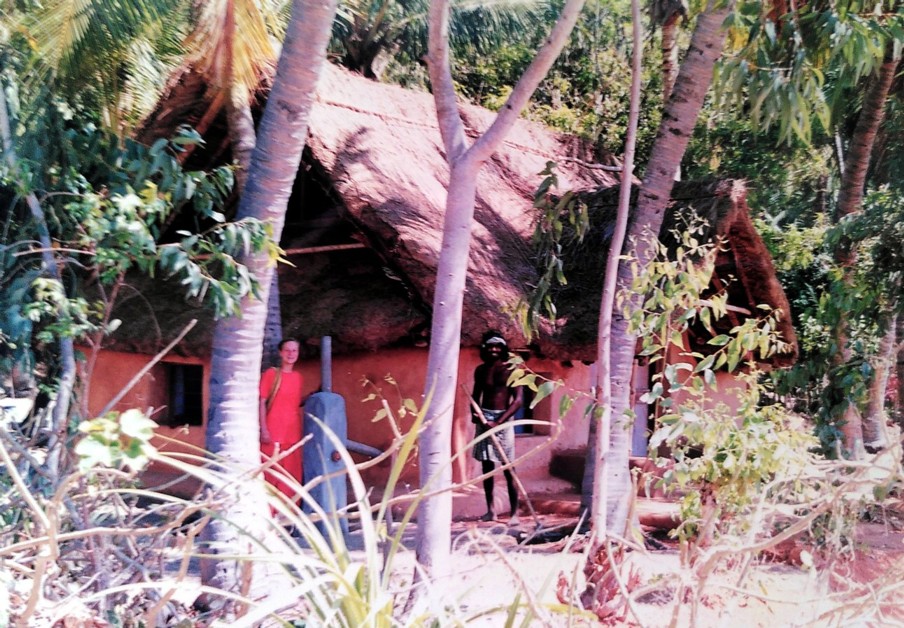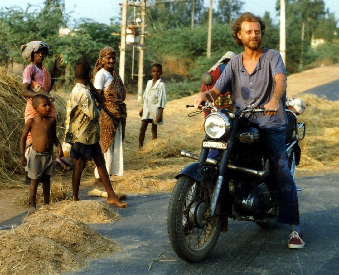 Ein Jahr später begab ich mich nochmals dorthin, mit meiner Mutter im Gepäck, die sich wünschte, nach langer Zeit endlich mal ihren Buben, meinen Bruder, treffen zu können. Er befand sich gerade wieder im Süden, allerdings nur mehr sehr kurz, da er schon den Umzug in den Norden nach Darjeeling vorbereitete, um dort seinen Tempel zu bauen. Für Muttern hatten er und Karin noch ein Bett übrig, umgeben von Spinnen, Skorpionen, Ratten, eh ungiftigen Schlangen und spirituellen Aufgaben(!). Ich schnappte mir wieder die Enfield und erkundete erstmals Kerala im Südwesten. Am Kovalam-Beach des Indischen und viel türkisblaueren Ozeans gönnte ich mir eine Schnorcheltour, nicht ohne dabei zu sparen. So wurde mir ein älterer Taubstummer mit Turban und Lendenschurz zugeteilt, mit dem ich zunächst 2 Baumstämme zusammenbinden musste, um danach damit knieend und mit morschen Brettln als Paddel in die unruhige See stach. Mehrmals ging ich dabei unfreiwillig über Board und bald konzentrierte ich mich mehr ans Festhalten, anstatt armselig zu paddeln. Und irgendwann, nachdem ich meinen „Kapitän“ schon voller Fragezeichen anstarrte, meinte er schließlich „h,h,h“ und so was wie „grwxxx“, deutete und fuchtelte nach unten und überließ mich den Tiefen. Die geliehene Schnorchel-Brille war ausnahmsweise nicht angelaufen und ich befand mich völlig ungetrübt inmitten zahlloser Haie! Okay, es waren offenbar selbst ängstliche Katzenhaie, aber als über-1-Meter-Prügel, machten die durchaus auch was her. Sonst war da nur geringfügig und wenig spannendes Kleinvieh und ich blieb dann eigentlich nur deshalb länger im Wasser, um die anstrengende Rückruderei hinauszuzögern. Am Strand gabs schon damals einige nette, fast schon touristische, Lokale, schließlich musste ich das Erlebte erzählen und nicht alle waren dort taubstumm. Als ich nach einer Woche, nur kurz vor Bruders Übersiedlung, meine Mutter wieder in Empfang nahm, lobte sie lautstark ihren Großen Gott, fuhr mir auf meiner Enfield zu einer Krokodilfarm und erfreute sich dankbar wie nie zuvor an meiner Gegenwart…