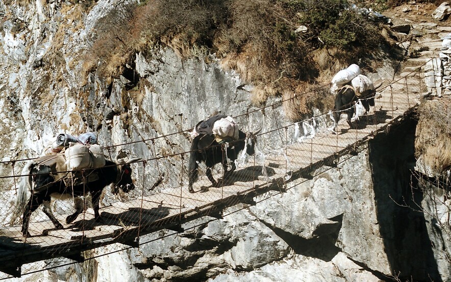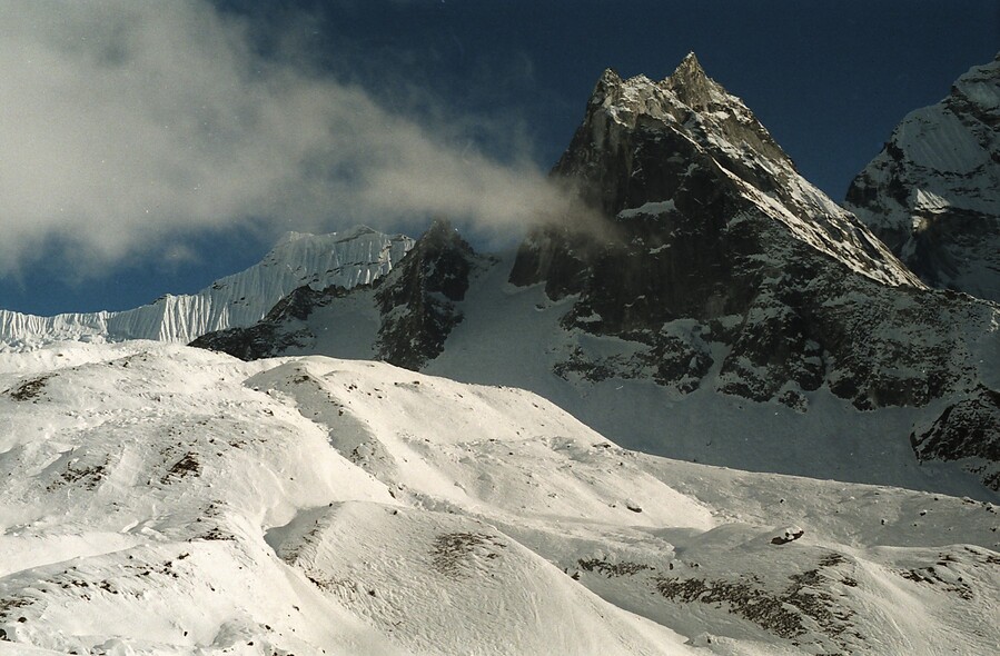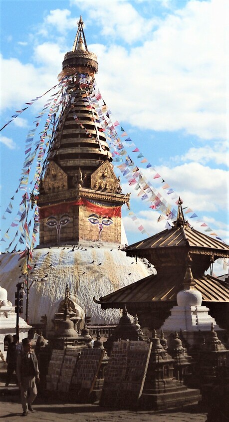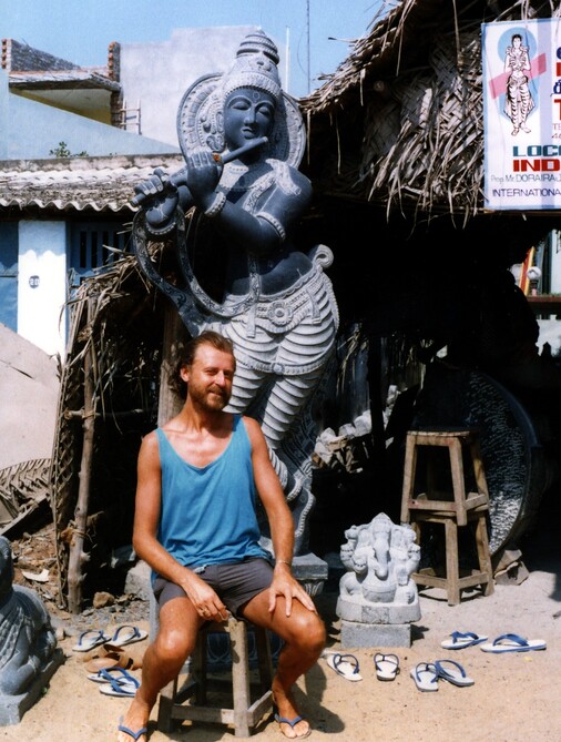 Als ich in Delhi eintraf, erfuhr ich rasch von der Verschiebung des Weiterflugs nach Kathmandu wie auch den Grund dafür. Heftige Regenfälle und Überschwemmungen legten die nepalesische Hauptstadt kurzfristig lahm. Tags darauf gelangte ich dennoch hin und ich pirschte mich durch die Aufräumarbeiten in die viel gepriesenen Sehenswürdigkeiten wie hauptsächlich buddhistische Tempel diverser Anhöhen, Schreinen, Stupas und Pagoden. Mit einer beim Verharren am Delhi-Airport kennengelernten Slowenin besuchte ich auch die historische Kaiserstadt Bhaktapur samt gastronomischer Infrastruktur. Ziel war allerdings das höchste und mächtigste Gebirge der Welt, also nutzte ich die nächste Gelegenheit um mit einem Helikopter, tieffliegend wie ein Huhn und mit bester Aussicht auf die vor allem am Reisfeld arbeitenden Menschen, mit schneebedecktem Himalaya am Horizont, in das ca. 2.800m hoch gelegene Bergdorf Lukla zu kommen. Von dort aus wanderte ich für 2 Wochen über das Sherpadorf Namche-Bazar und dem Tengboche-Kloster, vorbei am heiligen Berg Ama Dablam bis in das Basislager des Mount Everest. An der 8.500m hohen Lotse-Flanke bis zu Mera- u. Islandpeak, zum wunderschönen Gokyo-Lake und auf den dem Mount Pumori benachbarten Kala Patthar, mit perfektem Blick auf den Sagarmatha genannten Everest. Am Weg dorthin schlief ich gut und günstig bei Sherpas, deren aufgeweckte und nicht englischsprechende Kinder mich liebevoll „Pizza“ nannten. Die einzigartige Szenerie und das klare tiefblau wolkenlose Wetter mit frischestem tiefem Neuschnee hatte natürlich ein Vorspiel. Schon beim Aufstieg kamen mir mehrere mittels Ackjas oder sonstigen Bahren violett-gefrorene Leichen entgegengetragen, nachdem es zuvor dort wider Erwarten (vermutlich während des Regens in Kathmandu) 3 Tage lang durchgeschneit hat und Bergsteiger eingekesselt wurden. Stellenweise war es nur möglich über größere Steine im Flussbett entlang weiterzukommen, dafür konnte ich nebst meinem in Namche Bazar kennengelernten Bergkameraden Dexter (oder hieß er Gordon?) überall erster sein. Erster war ich auch an einer steilen Stelle, wo ein schwer beladener Yak abgestürzt war und sich zwischen 2 Felsen verfing. Sein zweibeiniger einheimischer Begleiter versuchte schon verzweifelt, das von dem Tier getragene Zeug quasi ins Trockene hinaufzubekommen. Erst half ich ihm natürlich dabei und während wir noch auf Dexter oder mögliche andere Bergsteiger warteten, banden wir unser Yak an Seile, mit denen wir es dann nach Eintreffen letzterer gemeinsam und mühsam wieder in die Spur ziehen konnten. Dieses an sich eher scheue Tier kuschelte sich an mich und leckte mir die Hände und meine Augen wurden prompt anderwärtig feucht! So sehr mir die Szenerie dieses traumhaften Bergpanoramas …ein Stück weit erinnerlich ist (oje, diese Ausdrucksweise kenn i doch von ungustiösen österreichischen Schnöselpolitikern!), so sehr fragwürdig und abstoßend erschien mir damals schon das Verhalten einiger Bergtouristen. Es war eigentlich üblich, in den über 5.000m hohen Behausungen nicht den Raum zu heizen, sondern nur für das Kochen des Tees Feuer zu machen und das ausschließlich mit Yak-Scheiße. Skrupellose, vorwiegend Russen und Amis, hatten mit ihren Rubels und Dollars Sherpas genötigt oder geschmiert, Cola in Kisten, schwerer als deren Körpergewicht, in noch höhere Regionen zu schleppen. Wasser für Tee oder auch pur hätte der Schnee geliefert. Mit Brennholz verhielt es sich ebenso, Sherpas mussten jeweils bis zur oder knapp unter die Baumgrenze bei 3.000 bis 3.500m absteigen, um Unmengen Holz für das Beheizen der hochgelegenen Steinhütten rauf zu schaffen, damit Idioten in T-Shirts etc. rassistische und frauenfeindliche Sprüche zum …schlechtesten, von sich geben konnten. Nicht nur wegen des Klimawandels, auch deshalb hat sich die Baumgrenze schon in weit tiefere Regionen verlagert. Auch dass der gesamte Müll solcher Leute und leere Sauerstoffflachen, sowie vereinzelt auch tiefgefrorene Leichen, auf weit über 6.000m oben bleiben, bedarf eigener Sammeltrupps, die dann nicht selten in Schlechtwetter geraten und ihr Leben aufs Spiel setzen müssen, oft auch ohne happy end! Okay, Ich verbrachte 3 Nächte bei minus 25 Grad Außen- und ca. -10 Grad Innentemperatur in meinem viel zu oft schon ge- u. verwaschenen Bundesheerschlafsack. Die daraus resultierende Erkältung veranlasste mich etwas beschleunigter abzusteigen und bald den Süden von Indien anzusteuern. Zurück nach Kathmandu flog ich erstmal mit einem Sportflieger von der kürzesten und steilsten Landepiste der Welt. In Kalkutta wurde zwischengelandet und ich wühlte mich durch dichtestes Verkehrschaos von farbeprächtigen Menschenmassen, Rikschas, Vehikeln aller nur denkbaren Hoch- u. Querformate, 1-, 2- und ?-spurig und natürlich unzähligen Heiligen Kühen, die damals fast noch sowas wie Vorrang hatten. Mutter Teresa konnte ich nicht finden, wahrscheinlich nur des Smogs wegen und der vielgerüchigen Abgase, durch die man nicht sonderlich weit blicken konnte?! Über Madras (heute Chennai) gelange ich nach Tamil Nadu an der Südostküste. Die Strände des Golfs von Bengalen waren großer Brandung ausgesetzt und die vielen Fischer benötigten meist mehrere Versuche, um über riesige Wellen waghalsig ins Meer rauszukommen. Das erstaunliche für mich war, dass gottesfürchtig fast keiner von denen schwimmen konnte. Mahabalipuram hieß der auserwählte Ort, von dem ich schon von meinem Bruder erzählt bekam, da er dort zuvor schon mehrere Jahre gelebt hatte (Er selbst war da gerade mit seiner Lebensgefährtin Karin per Dieselmotorrad in Ladakh unterwegs). Es war ein Dorf von unzähligen Steinmetzen und es wurde fast rund um die Uhr gehämmert, gebohrt, gesägt und geschliffen, was mich nicht störte, da ich in dieser Zeit im Ösiland nebenbei selber derart tätig war. In oder aus riesigen Felsformationen wurden ganze Tempel, hier meist für Hindus, gehauen, oder gigantische 