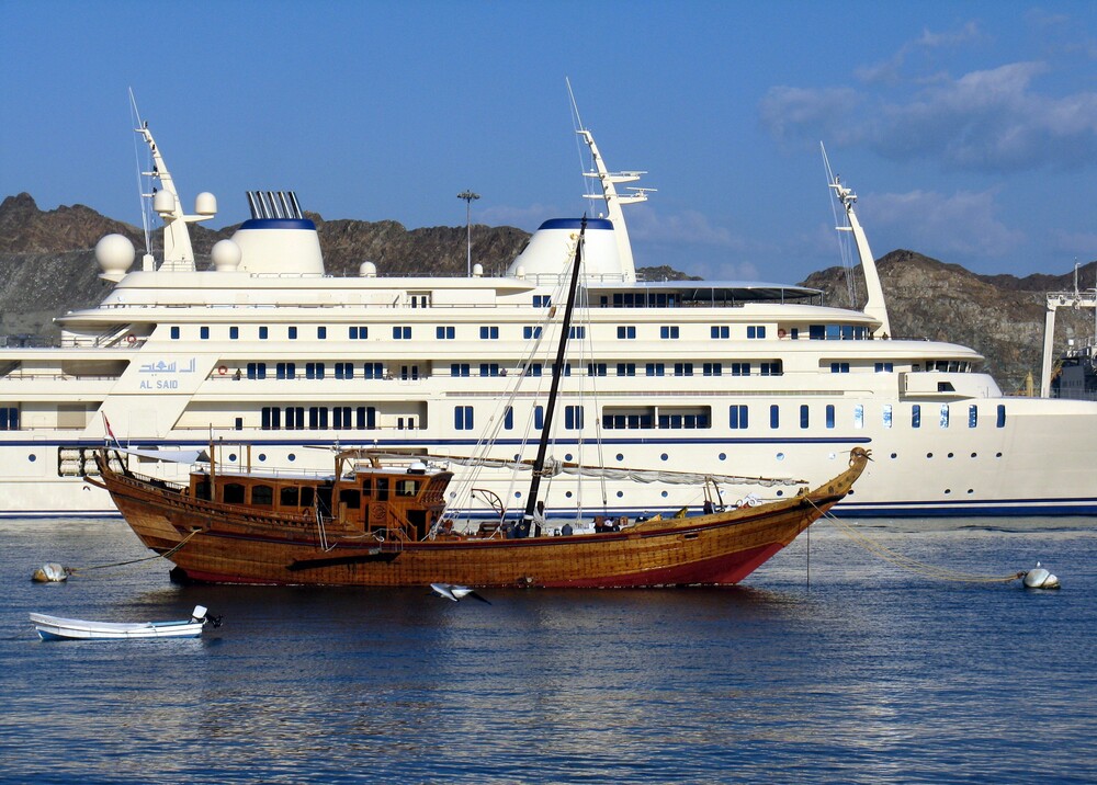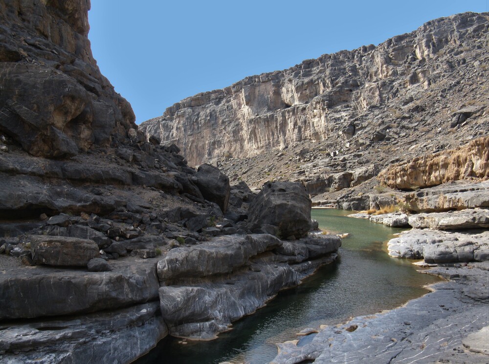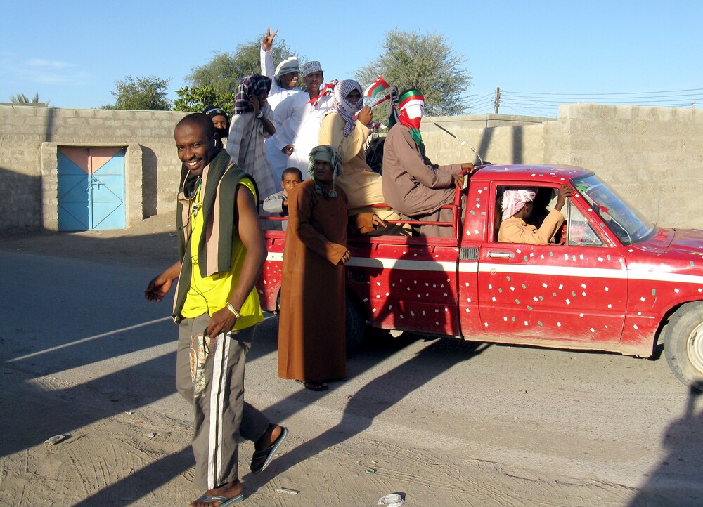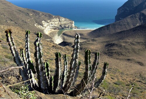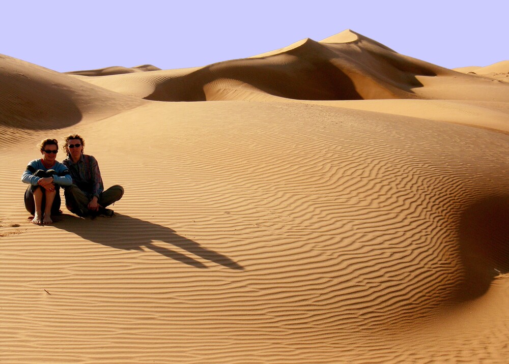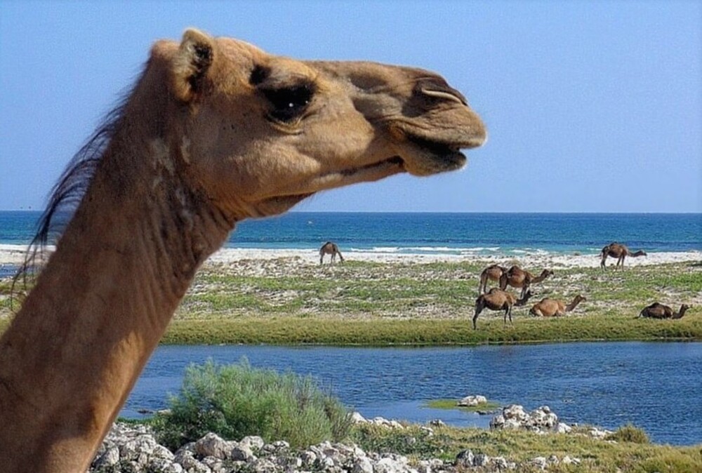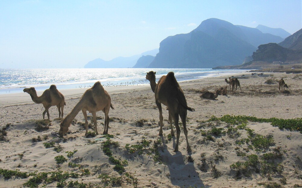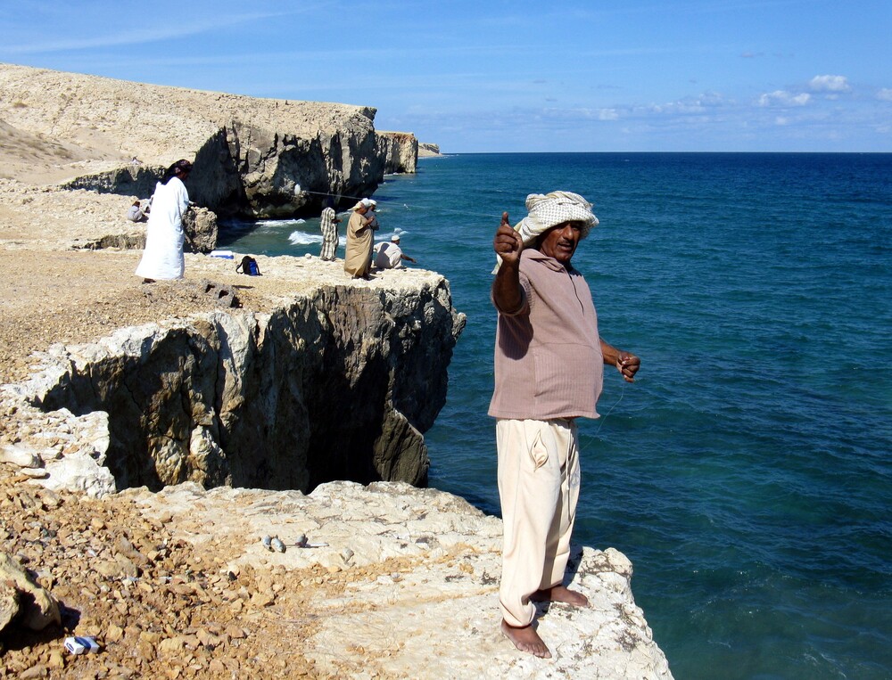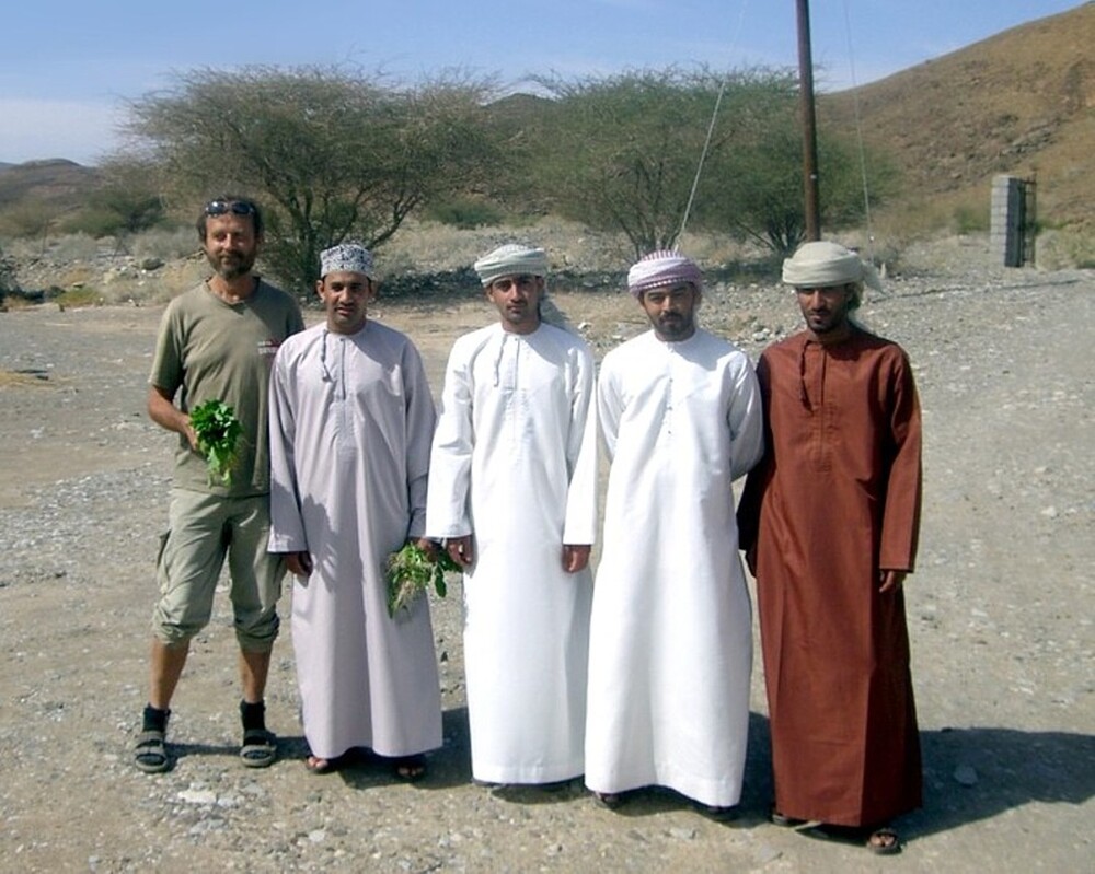 Dieses Dubai hatte mit seiner Altstadt, dem Creek, den Souks und seinen Bewohnern sehr wohl auch die sympathische Seite, was ich von gottspielenden Scheichs mit ihren futuristischen Irrsinnigkeiten nicht behaupten kann. „Sheiks walkin‘ around like kings, wearing fancy jewels and nose-rings“ Dank unserer Abhängigkeit und Hörigkeit von Öl und Treibstoffen geben sich viele als Sklavenhalter und die so gehaltenen, meist aus Süd- oder Südostasien stämmigen sind unterwürfig dankbar für irgendwelche halbwegs regelmäßige Einkünfte und stützen somit zusätzlich das System. Den Burj Kalifa, das mit fast 830 m welthöchste Gebäude, musste ich schon inspizieren, hatte ich doch als Kindergarten-Architekt einst meinen Lego-Turm bis zum Plafond hochgezogen. Nicht ohne hysterisch loszuheulen, als ich erstens damit oben anstand und zweitens die etwas beleibtere Tante, mich ob meiner maßlosen Verwendung aller Steine des Gartens tadelnd, sich plumpen Schrittes näherte und mein Werk zum Einsturz brachte. Unser Verweilen in diesem Emirat hielt sich jedenfalls in Grenzen. Wir steuerten die Halbinsel Musandam mit seinen imposanten Fjorden an, durchschipperten diese natürlich und schlugen in einem jugendherbergsähnlichen und erschwinglichen Matratzenlager auf, mit Blick Richtung nahem Iran und der dazwischen liegenden Straße von Hormuz. Städte wie Muskat, Sur, Nazwa und Salalah gefielen uns wirklich sehr, wie auch die imposanten Lehm-Dörfer und Burgen. Und überall wurden unsere Mädels, Waltraud und Astrid, wertschätzend und mit Respekt behandelt. „Plansee-Bader“ Klaus und ich hatten mehr mit dem erwarteten Problem der Bierlosigkeit zu kämpfen. Als uns der Entzug zu sehr plagte, enterten wir ein Nobelhotel, das wir üblicherweise großräumig umschiffen würden, um für teures Geld warmes Dosenbier zu ergattern. Auch wenn uns die verwendeten Fruchtaromen gewöhnungsbedürftig erschienen, pflegten wir zusehends das Rauchen der Wasserpfeife (Shisha), welches sich sehr gemütlich und kommunikativ mit netten Einheimischen tun ließ. Beeindruckend war natürlich das Erklimmen der beiden Sandwüsten, der Berge und Canyons und die wahrlich paradiesischen Wadis, die wir auch (hier leider nicht nackt!) durchschwimmen konnten. Steilküstenfischer versuchten uns wenig erfolgreich ihr Handwerk beizubringen. Spektakulär war’s allemal. Nähe jemenitischer Grenze fanden wir an einem der schönsten Strände der Welt eine größere Flamingo-Population und gar nicht so scheue wild lebende Kamele. Dort gibt’s auch Weihrauch-Stauden so weit das Auge reicht, also machten wir Bekanntschaft mit unterschiedlichsten daraus gewonnenen Produkten und ich erinnerte mich, als einstiger Ministrant leidenschaftlich und äußerst verschwenderisch damit herumgeräuchert zu haben…