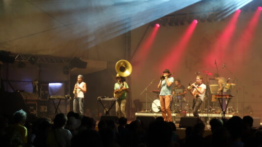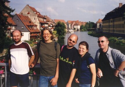 Musikfeste waren immer schon und vermehrt nach meinem eigenen diesbezüglichen Engagement begehrtes Ziel innerhalb unserer Cliquen. Erst regelmäßige Besuche bei Jazz in Wiesen und Folk in Waidhofen, dann nach Roskilde, Montreux, Belfort und ähnlichen internationalen Events, mauserten sich 2 europäische Festivals zur alljährlichen Konstanten heraus. Kultodromler Othmar B versammelte eine Schar neu- und musikgieriger Weinviertler, der ich auch zeitweilig angehören durfte, um nach Rudolstadt im ostdeutschen Thüringen zu einem der umfangreichsten Weltmusikfestivals zu pilgern. Der Ort selbst war schon sehr schön mit seiner Fachwerksarchitektur am Fuße eines mächtigen Schlosses, für den Weg dorthin nahmen wir uns meist auch noch ein paar Tage Zeit, fuhren über Tschechien, Dresden und Erzgebirge rauf und über Bayern wie Bamberg oder Regensburg wieder retour. Ich nächtigte meist im Auto oder am örtlichen Campingplatz. Schlafen war da halt nicht so sehr angesagt, weil nach offiziellem Programm dort noch bis zum Morgengrauen irische Reels gegeigt wurden, ehe quasi zum Frühschoppen schon ab 8 die westafrikanischen Djembetrommler loslegten. Egal, der vorhandene saukalte Pool oder die benachbarte Saale ließ mich meist ganz gut oder halbwegs frisch in den vielseitigen Tag starten.