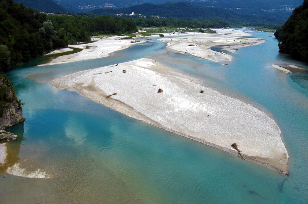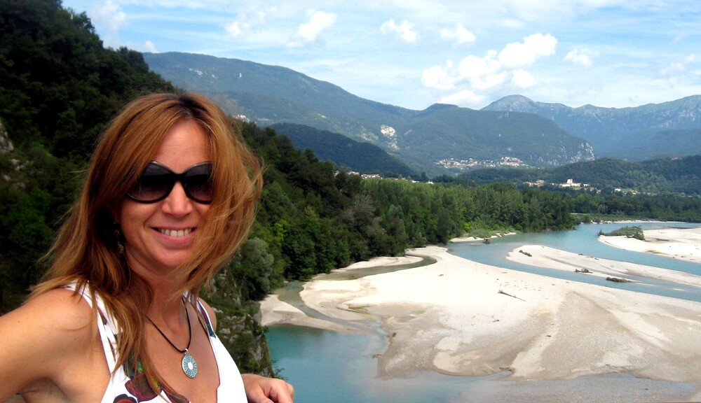 Unsere Mistelbacher „obergrüne“ Martina P wiederum war es, die einige von uns zum Folkfest ins friaulische Spilimbergo lockte. Am dortigen „Campo Sportivo“ konnten wir annähernd gratis unsere Zelte aufschlagen, hatten nicht weit in die malerische Stadtkulisse samt beeindruckender Mosaikschule, wo an mehreren attraktiven Plätzen wie auch auf einer großen Bühne feurige Musik bei meist ebensolcher Kulinarik dargeboten wurde. Der wunderbare türkisgrüne (aber nicht viel wärmere, als die deutsche Saale) Tagliamento war nur eine Fahrradtour entfernt und bot mit seiner anspruchsvollen Strömung und unseren daraus resultierenden Driftorgien ein wunderbar erfrischendes Vorprogramm zur abendlichen Kultur. Mehrmals war da auch mein gelber „Dolphin“, ein gut 40-jähriges Semperit-Kajak dabei und als mich mal die gerade erst kennengelernte Katharina begleitete, warb ich bei ihr darum, eine größere Etappe mit mir flussabwärts zu paddeln. Großspurig erzählte ich, trotz heftigen und stürmischen Seegangs im offenen Meer, noch nie gekentert zu sein und sie willigte natürlich ein. Nach nur ein paar hundert Metern, als wir in einen anderen und größeren Mäander gelangten, scheiterten wir schon kläglichst. Insgesamt kenterten und überwuzzelten wir 3 Mal bis wir endlich an die Höhe von Spilimbergo gelangten, wo wir einigermaßen erschöpft in Badehose und Bikini die erste zur Verfügung stehende Bar aufsuchten und 2 doppelte Grappae erschnorrten. Trotz dieser Peinlichkeiten blieb mir Katharina wie durch ein Wunder wohl gesonnen und erhalten. Ich litt weit mehr als sie beim verzweifeltn Grübeln nach der möglichen Ursache. Ich Depp hatte mich beim Eindringen in den schnelleren Flußabschnitt wie am Motorrad in die Kurve reingelegt, wodurch nur etwas Druck des „anderen“ Wassers reichte, um uns zu kippen. Genau das Gegenteil wäre, wie durchaus öfter in meinem lustigen Leben, g’scheiter g’wesn…