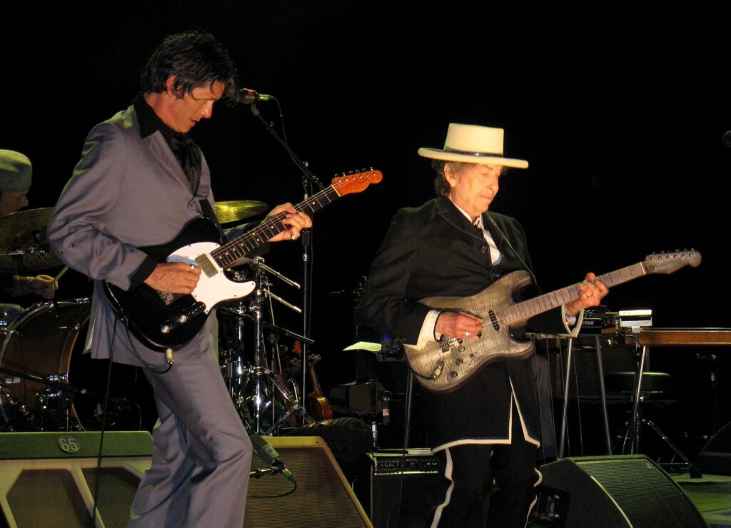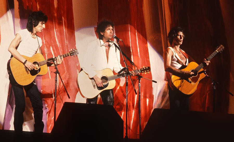 Unter Kabarett fällt vielleicht die Lust des Alten, sich unerkannt in die profane Menge oder als Besucher von eigenwilligen Veranstaltungen, wie dem Beatles-Rundgang in Liverpool, zu mischen oder auf den Spuren Neil Youngs zu wandeln. Sonnenbrille alleine reicht da nicht, die ist man ohnehin gewohnt an ihm, so zieht er sich die Kapuze oder ein „Hoodie“ tief ins Gesicht und streitet bei dennoch erfolgtem Erkennen, leidenschaftlich ab, er zu sein. Hat sich aber auch schon herumgesprochen, also werden inzwischen unbedarfte Bankräuber-Kretzen und Handtaschen-Fladeranten nicht selten für Bob Dylan gehalten, yeah… Witzig können Dylan-Gigs allemal sein, wie z.B. eine Geschichte aus den Niederlanden Anfang der 90er-Jahre, als eine originell „behütete“ Lady die Bühne stürmte, wie er gerade mit „The Times, They Are A Changin“ begann. Sie schlich sich ihm von hinten an und überraschte, oder viel mehr, erschrak ihn, sodass Securities dazu eilten, um sie wegzuzerren. Er selbst zerrte sofort an ihrem anderen Ende, behielt die Oberhand und sang alle Strophen mit ihr gemeinsam, sie schön und original, er grinsend und originell. The best oft the worst, oder umgekehrt, war in den 80ern, als Mick Taylor ohnehin in der Band war und als spezielle Gäste noch Carlos Santana, Eric Clapton, Jeff Beck und ich glaub auch Mark Knopfler, mit ihren Gitarren aufmarschierten. Die Solis spielte er bei Belustigung letzterer alle selbst! Naja, seine Wahnsinnsmusikanten dürfen schon mal. Bei ihrem Einstand, ihren Geburts- und ähnlichen Tagen oder bei ihrem finalen Gig geht schon mal unglaubliche Post ab. Überhaupt hat er mit seinen Leuten vor allem seit Beginn der „Never Ending Tour“ eine wirklich fantastische, kommunikative und inspirierende Art zu musizieren kultiviert.