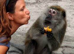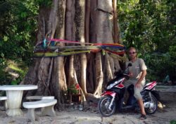 Ich selbst bin inzwischen über Bangkok in den Süden und verbrachte mal ein paar schlaflose, aber dennoch wunderbare Tage auf der Rasta- und Reggaebetonten und auf der Höhe Malysiens gelegenen Koh Lipe -Insel, bevor ich auf die naturbelassene Nationalpark-Insel Koh Tarutao übersetzte. Am dortigen Strand harrte ich gemeinsam mit meinem neuen Freund Franz auf das Eintreffen Katharinas. Franz war ein kleinerer Hai, der mich bei meinen Badegängen neugierig umkreiste und mir somit das Warten auf meine Liebste erleichterte. Da ich nur ein nicht internetfähiges altes Tasten-Klapphandy dabei hatte, mussten wir uns auf 2 Wochen ältere Vereinbarungen verlassen und mit nur einem knappen Tag Verspätung traf sie schließlich auch ein. Weit mehr Affen als Touristen umgaben uns, einsamst waren die Strände dort, was unserer damals jungen Beziehung keineswegs ungelegen kam. Um dann doch noch unter Leute zu kommen, begab ich mich mit größerem Boot samt 2 Französinnen, 1 Franzosen und 1 „Franke“ auf Schnorcheltour. Absolut nichts sahen wir da unter Wasser, weder Korallen noch Fische, so was ist mir noch nie passiert. Egal, unsere Begleitung war sehr nett und der Küstenabschnitt extrem malerisch. Während inzwischen alle wieder am Boot waren, wollte ich nicht aufgeben und hoffte doch noch auf eine interessante Sichtung. Unvorstellbar! Nein, gesehen hab ich noch immer nichts, aber ich gelangte in eine Strömung, wie in einem reißenden Fluss und trieb in kurzer Zeit gute 200m vom Boot und seiner Besatzung ab, von der ich nur hoffte, dies irgendwie mitbekommen zu haben, da all meine körperlichen, wie akustischen Artikulierungsversuche wirkungslos blieben. Irgendwann kämpfte ich nicht mehr dagegen an, völlig erschöpft konnte ich dies auch nicht mehr und so ließ ich mich nur mehr treiben, in der Hoffnung, irgendwo anlanden zu können. Und das tat ich dann auch, an einem regelrechten Traumstrand. Offenbar geriet auch das Boot in diese Strömung und Kathi konnte bald aufatmen und mich dort in der Sonne liegend wieder einsammeln.