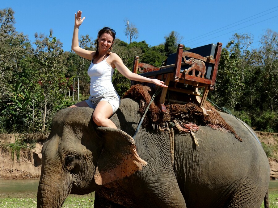 Schon bevor wir uns kennenlernten, plante Katharina ihre längere Reise (und nicht nur zufällig) in dieses Land des Lächelns. Also musste ich natürlich mit, eh klar! Nur konnte ich nicht so lange wie sie „Selbständige“ Urlaub oder frei bekommen, also begann sie ihre Tour erstmal ohne mich in Laos und im thailändischen Norden. Sie schipperte mehrtägig am Mekong, den wir gemeinsam Jahre später noch von der vietnamesischen Seite befahren sollten, badete, striegelte und ritt Elefanten und diskutierte mit buddhistischen Mönchen.