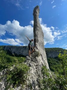 An der steileren istrischen Ostküste, wo eine der schönsten Buchten des Landes ruht, bezogen wir dann auf Betreiben Katharina’s einen Teil der alten Stadtmauer, wohin wir in Kürze auch wieder-kehren. Brsec, Bersecchio oder Brischitz heiß das nette Dorf mit seinen ebenso netten und feierlaunigen Bewohnern. Das vielfältige Völkergemisch Istriens ließ die Menschen dort gar nicht erst zu rundum übliche Nationalisten werden. Nerven können höchstens die hauptsaisonlichen Touristen mit ihren verblödeten Ansprüchen. Der eigentlich versteckte Strand, den ich in den 80ern selbst im August noch so gut wie allein vorfand, ist jetzt oft unangenehm voll und laut. InfluencerInnen schickten Fotos davon an eine ignorante Tausendschaft und wir waren genötigt, einen oder zwei noch viel verstecktere geile Zugänge zum wunderschönen Mare oder Mora zu suchen. Wir fanden und trafen dort für adriatische Verhältnisse auch eine üppige Unterwasserwelt an. Berge, Wasserfälle, ein unglaublicher Felsenpark in der näheren Umgebung, Weingüter wie auch Olivenhöfe und eine immer einfallsreicher werdende Gastronomie veranlassen uns, trotz zuvor erwähnter Abstriche, ziemlich sicher weiter dorthin „heim“ zu fahren…