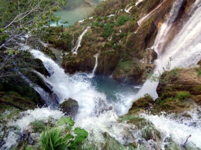 Einige Orte der Umgebung, die wir damals besuchten, wie Valun und Mali Losinj, blieben mir in schöner Erinnerung, so steuerte ich ab Anfang 80 halbwegs regelmäßig mit meinen jeweiligen Freundinnen und Freunden diese und andere „Kvarner Inseln“ an. Besonders die Stadt Cres, das Bergdorf Lubenice, die Blaue Grotte samt dazugehörigen Strand und die Fischersiedlung Rovenska hinter Veli Losinj hielten unser Interesse immer wieder am Brodeln. Mali heißt übrigens „klein“ und veli heißt „groß“, aber mit den beiden Hauptorten auf Losinj verhält es sich, alters- oder entstehungsgeschichtlich bedingt, genau umgekehrt! Irgendwann durchpflügten wir die Creser Berge mit unseren Enduros. Selbst hatte ich anfangs keine eigene, aber die liebe Edeltraud lieh mir ihre KLE-Kawa, vermutlich war ihr das ohnehin zu blöd oder anstrengend, was wir da aufführten. Ich lernte letztere kennen, als ich in der Celeste-Jazz-Bar nachtkellnerte. Sie fragte mich mal ungeniert nach einem oder eigentlich meinem Job dort, was ich erst mal lachend verneinte. Nachdem sie begann, die Aschenbecher zu leeren und die Tische blank zu putzen und sie nicht leicht mehr loszuwerden war, verriet ich ihr eine damalige gut befreundete „Gastrospezialistin“, die im Cafe Lange und im Käuzchen fuhrwerkte. Das war die in früherem Kapiel schon erwähnte Lucia K und es stellte sich heraus, dass die beiden, warum auch immer, sich schon kannten und fortan war Edi unser aller „goschade“ Käuzchenkellnerin. Im Laufe der Jahre, „Jugoslawien“ war inzwischen Vergangenheit, eroberten wir auch Dalmatien, sein teils gebirgiges Hinterland, wie den Velebit, die Paklenica-Schluchten, sowie die Plitvicer- und die Krkafälle. Öfter aber zog es uns an und auf die vorgelagerten Inseln, die ich inzwischen fast alle halbwegs gut kenne. Bis auf die entlegene, aber vielleicht sogar allerschönste, deren Name hier „vorsichtshalber“ unerwähnt bleibt, will da ja demnächst selber und möglichst allein mit Kathi hin …Chewing gum!