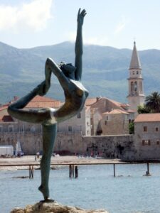 Denkt man sich den russischen wie auch den amischen Einfluss weg, dann bleibt auch Montenegro mit seiner Bucht von Kotor, den dortigen Austern mit Weißwein und dem köstlichen Niksicko-Pivo ein begehrtes Ziel. Das alte Zentrum des Küstenstädtchens Budva, malerisch schön, aber die komplett verbaute und verschandelte Umgebung muss man mühsam ausblenden. Ulcinj im Süden wirkt schon sehr albanisch und hat was Gemütliches, ungemütlich wurde es nur, als ich mal Waltraud und ihrer Freundin Olivia auf den dortigen FKK-Strand folgte. Dieser entpuppte sich als reiner Frauenstrand und mit mir wurde die Angelegenheit natürlich unrein. Mehrere mittelältliche Damen, um nicht Furien zu sagen, jagten mich, lautstark „nix Mann!“ brüllend, mit ihren feuchten Handtuchfetzen fort. Nebenan gabs gottlob noch wilde und freie(!) Natur und sogar ein improvisiertes Standl, an dem ich als „Entschädigung“ noch hervorragenden Rotwein bekam. Natürlich versuchen selbst in Albanien Spekulanten ihr Glück, noch aber kann man ein wunderschönes und vom Massentourismus verschontes Land mit ganz lieben und un- oder kaum verdorbenen Leuten vorfinden. Lustige und herzliche Leute sind’s, die man z.B. in Shkodra beim gleichnamigen riesigen See und den Dörfern der Umgebung, die wir mit’n Radl durchstreiften, antrifft. Und die Albaner sind erst recht eifrige Radfahrer, aber auch Mercedespiloten (unsympathisch!), allerdings Piloten recht alter und immer wieder zusammengeschusterter Mercedeskarren (sympathisch!). Die teilweise 3. Welt -Atmosphäre löste bei mir natürlich Wohlbefinden aus. Kathi wurde eingeladen, eine Moschee zu besuchen, ich Skeptiker ging derweil auf ein Bier. Sie verbuchte es als durchaus interessantes, nettes und menschenfreundliches Treffen und ich hatte mein Pogramm ähnlich empfunden. Komani Stausee und Shala-Fluss per Boot mit Picknick entpuppte sich als sehr sehr leiwand. Die Küsten, falls sie nicht verdreckt sind, denn Umweltbewusstsein ist noch nicht wirklich ein Thema dort, werden von den meisten Reisenden hoch gelobt. Unten am Weg nach Griechenland ist ja auch Korfu vorgelagert und das Meer ist wohl ident. Bald und vor allem, wenn’s so günstig bleibt, wird auch diese Gegend überrannt sein…