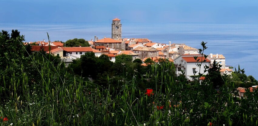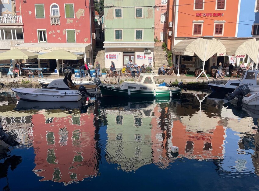 An der steileren istrischen Ostküste, wo eine der schönsten Buchten des Landes ruht, bezogen wir dann auf Betreiben Katharina’s einen Teil der alten Stadtmauer, wohin wir in Kürze auch wieder-kehren. Brsec, Bersecchio oder Brischitz heiß das nette Dorf mit seinen ebenso netten und feierlaunigen Bewohnern. Das vielfältige Völkergemisch Istriens ließ die Menschen dort gar nicht erst zu rundum übliche Nationalisten werden. Nerven können höchstens die hauptsaisonlichen Touristen mit ihren verblödeten Ansprüchen. Der eigentlich versteckte Strand, den ich in den 80ern selbst im August noch so gut wie allein vorfand, ist jetzt oft unangenehm voll und laut. InfluencerInnen schickten Fotos davon an eine ignorante Tausendschaft und wir waren genötigt, einen oder zwei noch viel verstecktere geile Zugänge zum wunderschönen Mare oder Mora zu suchen. Wir fanden und trafen dort für adriatische Verhältnisse auch eine üppige Unterwasserwelt an. Berge, Wasserfälle, ein unglaublicher Felsenpark in der näheren Umgebung, Weingüter wie auch Olivenhöfe und eine immer einfallsreicher werdende Gastronomie veranlassen uns, trotz zuvor erwähnter Abstriche, ziemlich sicher weiter dorthin „heim“ zu fahren…