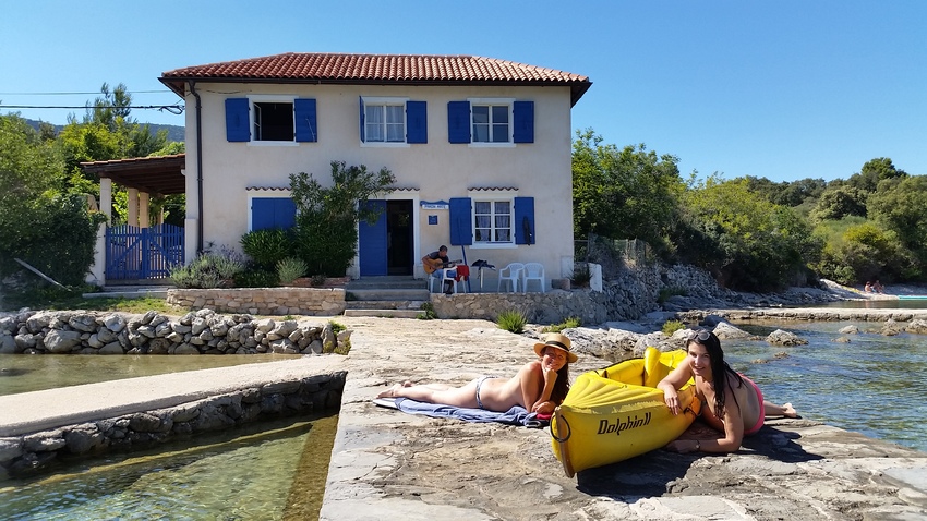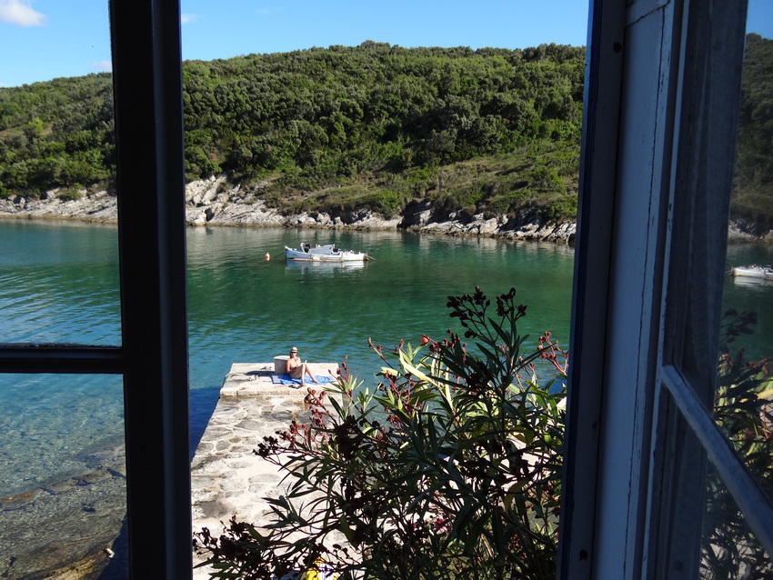 Heimatliche Gefühle, die ich ja nur sehr selten entwickle, sind und waren mir auch in Kroatien „passiert“. Jahrelang nistete ich mich mit allen möglichen Leuten bei Mama & Papa Turcic im alten Zentrum von Cres ein. Berühmt war deren selbstgebrannter köstlicher Feigengrappa, an dessen Entstehen ich gemeinsam mit Spezialfreund Gerhard „Sumsi“ S auch mal beteiligt war. Die Trauben kamen von der dalmatinischen Verwandtschaft und die Feigen lieferte der riesige Baum im Hof. Wir waren äußerst willige Handlanger und wurden natürlich mit Naturalien bezahlt. Sumsi, diese Krätzn spannte mir einst eine Freundin aus, diese aber nahm sich jede Zeit und Geduld der Welt, um mich mit „weisen“ Erläuterungen so weit bei Laune zu halten, dass er noch mein bester Freund wurde, mit dem ich dann auch vieles andere teilen durfte. Er fehlt mir! Später entdeckte ich das „Blaue Haus“ zwischen Nerezine und Sveti Jakov auf Losinj, das wir mehrmals und zu mehrt bezogen. In einer fjordartigen kleinen Bucht, direkt am Wasser, oder fast schon im Wasser, besser geht’s nicht! Statt morgendlicher Dusche gab‘s den Sprung ins tiefblaugrüne Meer und das klarerweise nackert, da außer vielleicht einem oder zwei netten und toleranten Fischern niemand zugegen war. Per Kajak kam man auch sehr g’schwind zu Einkauf oder Umtrunk.